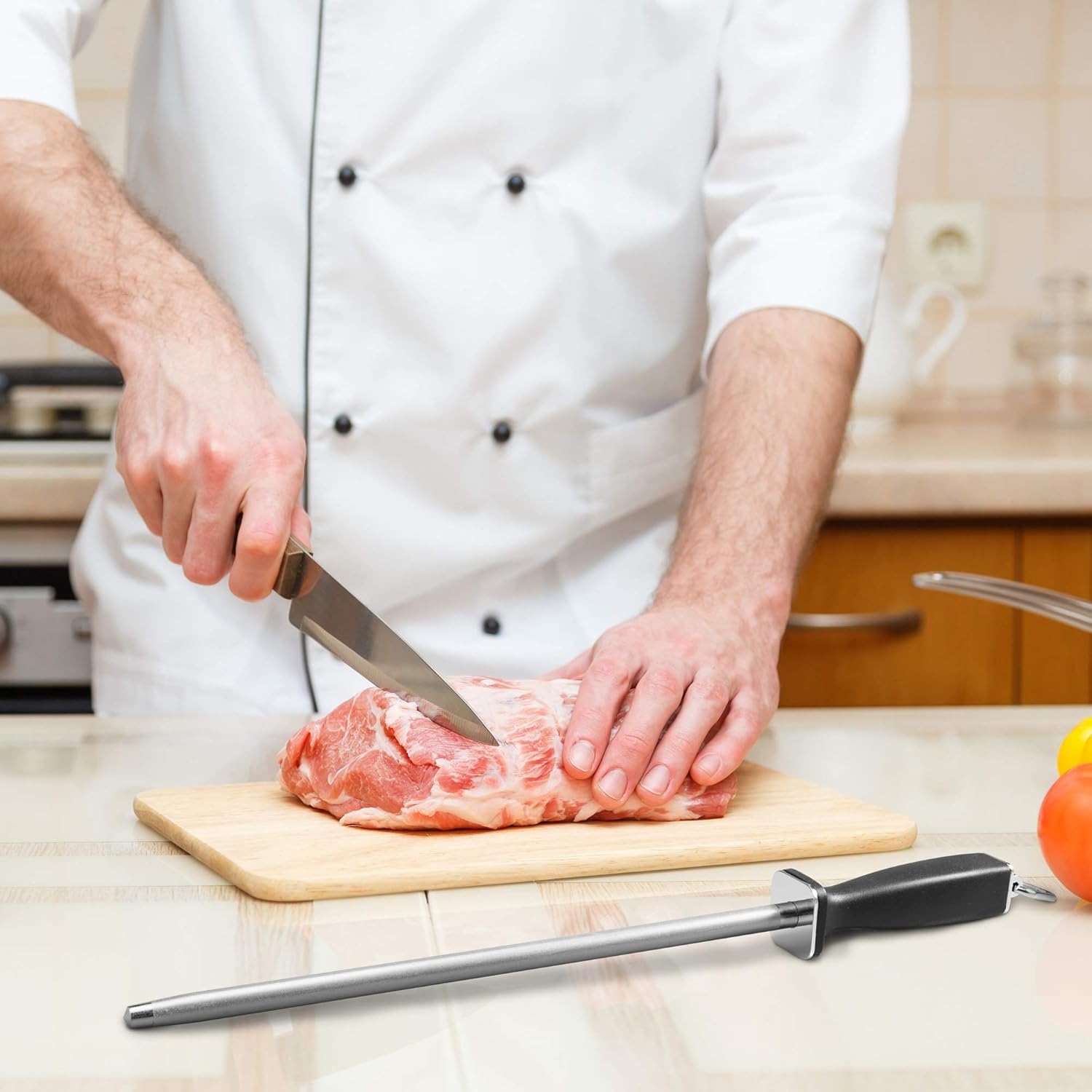 Superior Knife Sharpening Rod, 10 Inch Professional Diamond Brushed Sharpening Steel