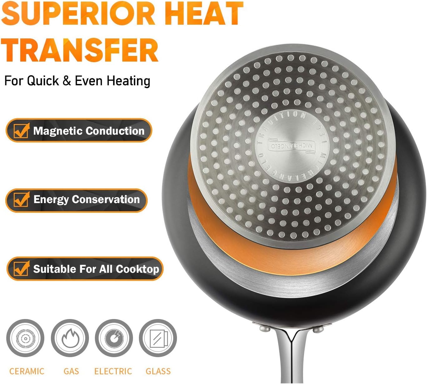 - Heats Quickly And Evenly: Durable 3 layers bottom of saucepans provides better performance of even heat distribution and warp-resistance, releasing foods effortlessly