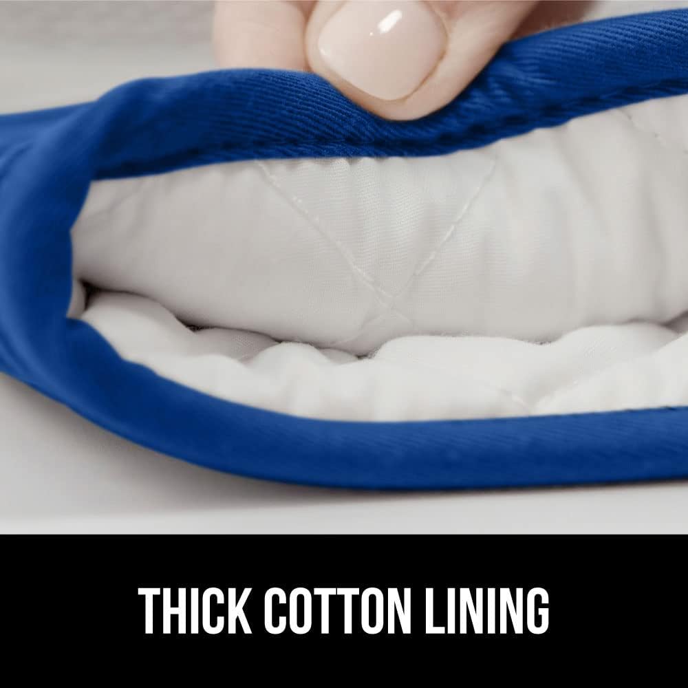 GORILLA GRIP BPA-Free Soft Silicone Oven Mitts, 14.5x8.3, Heat Resistant and Waterproof Cooking Gloves, Thick Cotton Lining, Flexible Gripping for Baking Grilling, Kitchen Potholders Set of 2, Blue