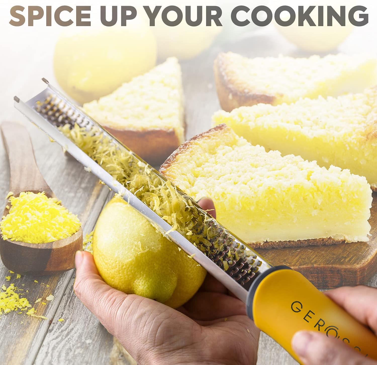 - ZESTER - Add extra flavor to your dish. This zester grater with handle comes with a razor-sharp blade that allows you to easily zest and grate lemons, cheese, ginger, fruits, spices, and vegetables.