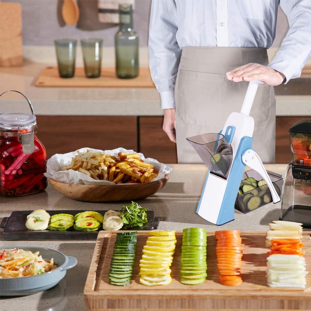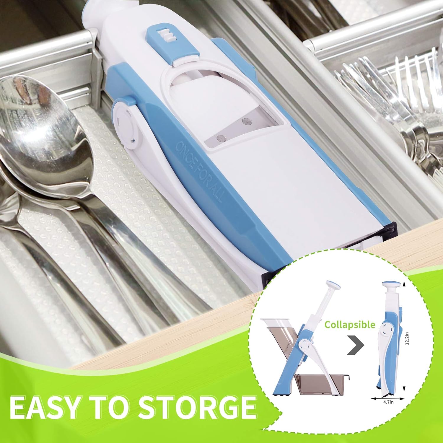 ONCE FOR ALL Safe Mandoline Slicer 5 in 1 Vegetable Cutter, Strips Julienne Dicer Adjustable Thickness 0.1-8 mm for Kitench Fast Meal Prep (Light Blue)