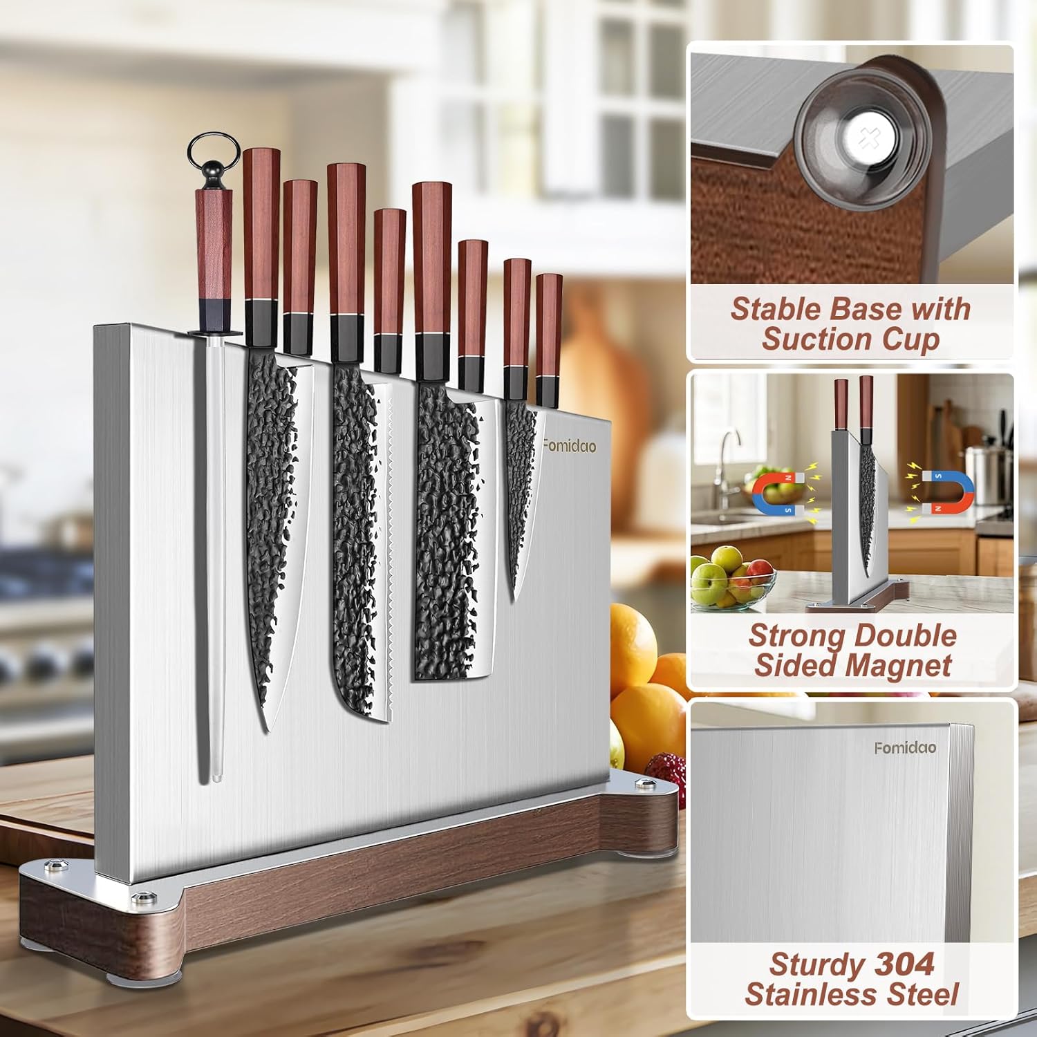 - Larger Capacity Magnetic Knife Holder Stand: Fomidao kitchen knife holder is different from the other ordinary,upgraded kitchen knife holder for kitchen counter is larger in size (magnetic knife board with 13.78x9.84 inches) allows more space for the magnet to hold knives of all sizes ans support longest 9.5"-10β blade and can be placed more than 14pcs knives