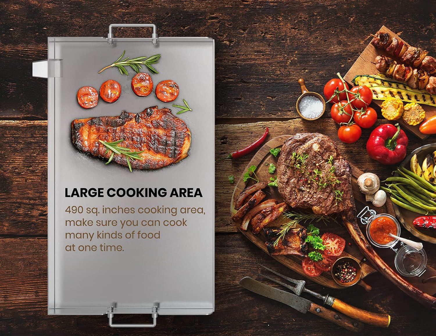 - Large Cooking Area: With 29β x 17.4β (504 sq. Inches) large surface, the grill accommodates enough grilled food for a large backyard or park barbecue party.