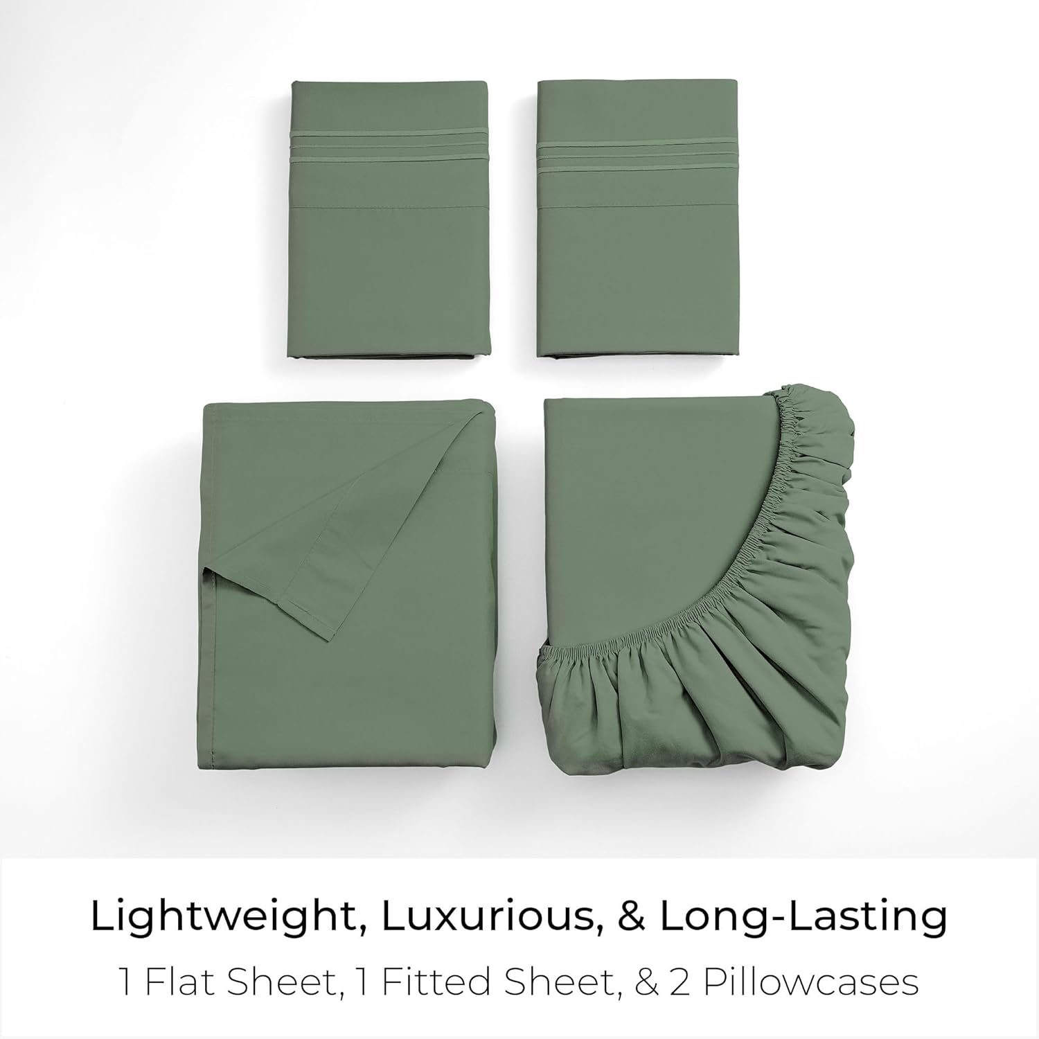 Mellanni Full Sheets Set - 4 PC Iconic Collection Bedding - Hotel Luxury, Extra Soft, Cooling Bed Sheets - Wrinkle, Fade, Stain Resistant (Full, Sage)