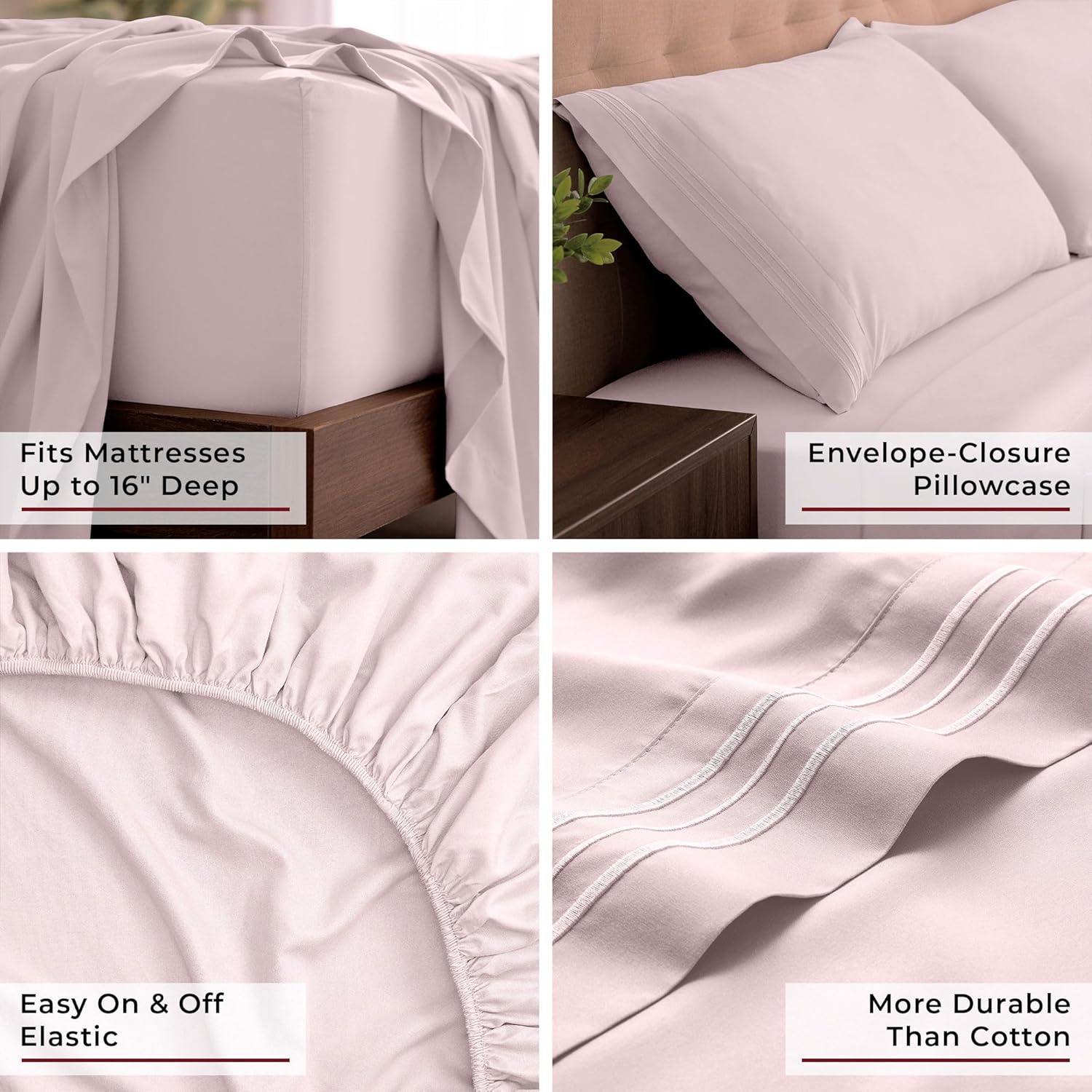 Mellanni California King Sheets Set - 4 PC Iconic Collection Bedding - Hotel Luxury, Extra Soft, Cooling Bed Sheets - Wrinkle, Fade, Stain Resistant (Cal King, Blush Pink)