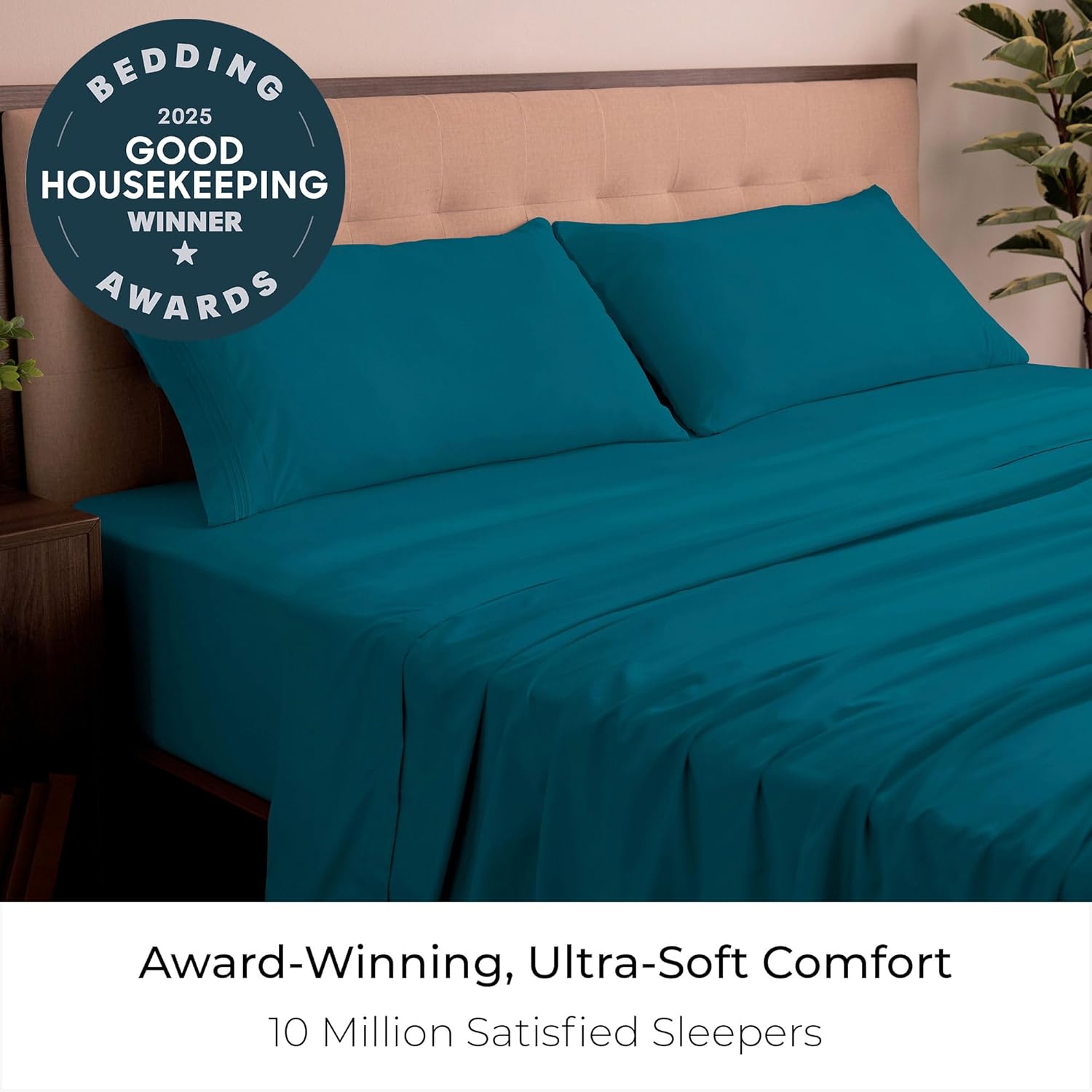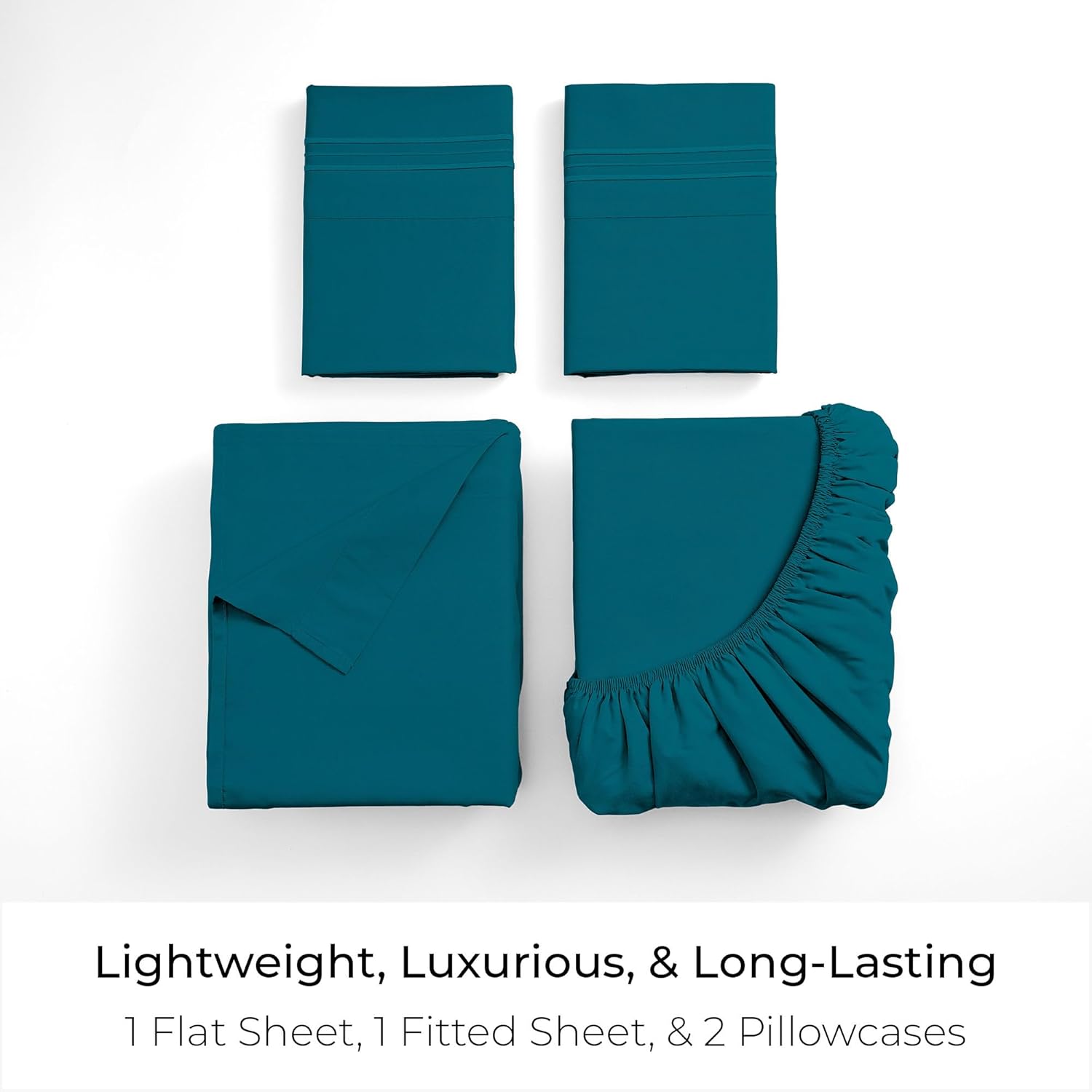 Mellanni California King Sheets Set - 4 PC Iconic Collection Bedding - Hotel Luxury, Extra Soft, Cooling Bed Sheets - Wrinkle, Fade, Stain Resistant (Cal King, Teal)