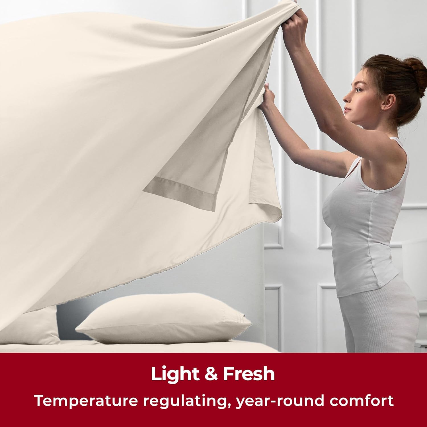 - Lightweight Luxury for Year-Round Comfort - Designed to be airy and ultra-light, our sheets offer effortless comfort in every season. Their thin, breathable construction enhances airflow, wicks moisture, and dries quickly. Despite their lightweight feel, these sheets are exceptionally strong and more durable than cotton, resisting stains, tears, and wear from frequent washing. Perfect for busy households with kids or pets.