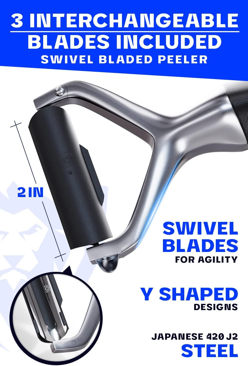 - Swivel-Peeler Design: Maneuver around corners, tight spaces, and protrusions with ease — the suspended blade self-adjusts to the food’s surface as you peel for better agility. The Y-design makes this peeler perfect for both left and right-handed cooks.