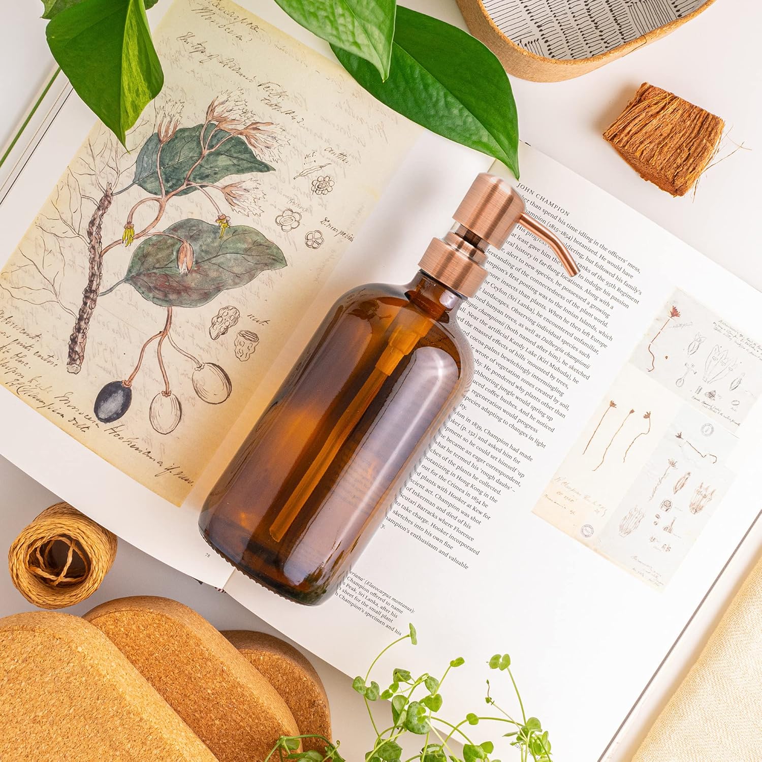 - UNRIVALED CONSTRUCTION - Set of 2 premium thick glass soap dispenser with pump. 16 Oz fortified amber bottles, refillable soap dispenser for daily use. Vine Creations soap dispensers are Lead-free.