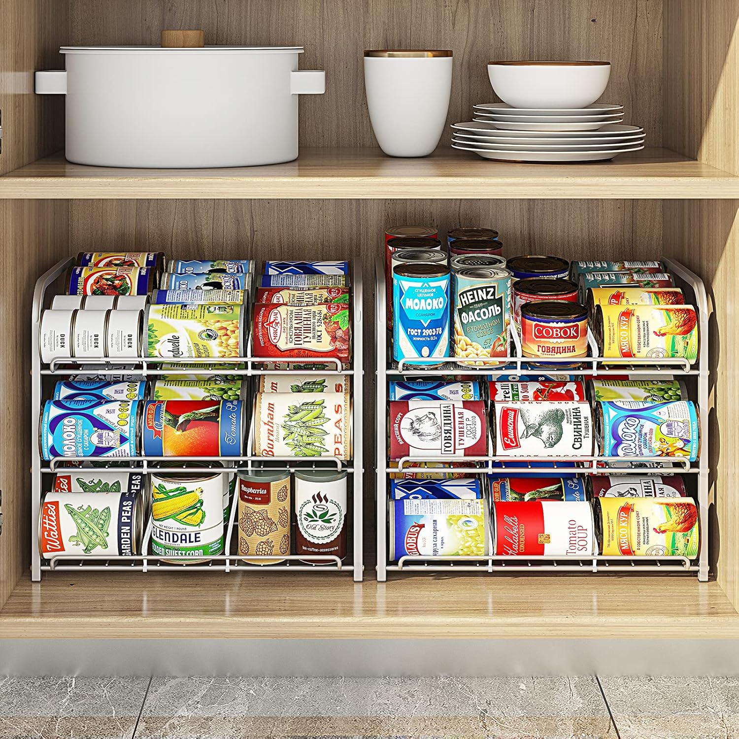 - ✅【Dimension】Please Measure the Cabinet Size in Advance Before Purchase. the Product Size of Can Rack is 16.5 "W* 12.2" D* 14.5“H.