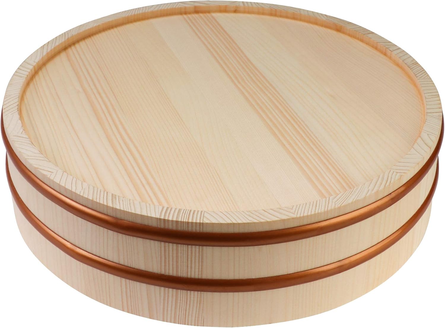 Kichgather Wooden Sushi Rice Bowl with Lid Hangiri Sushi Oke Sushi Rice Mixing Tub (14.2 ” with lid)