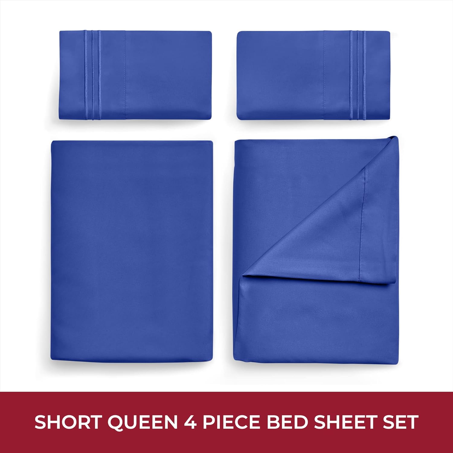 Mellanni RV Short Queen Sheets - 4 PC Iconic Collection Bedding - Hotel Luxury, Extra Soft, Cooling Bed Sheets - Deep Pocket up to 10 inch (RV/Short Queen, Royal Blue)