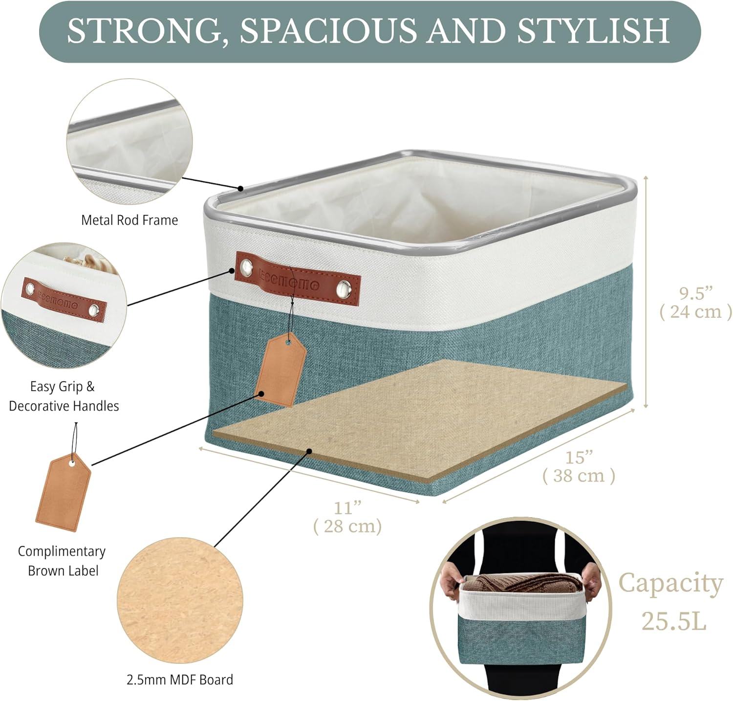 - Sturdy Construction: DECOMOMO closet storage bins are reinforced with an upper metal frame and 2.5mm MDF fiberboard bottom to keep the baskets upright. Comes with dual faux leather handles with a weight-bearing capacity of 25 lbs.