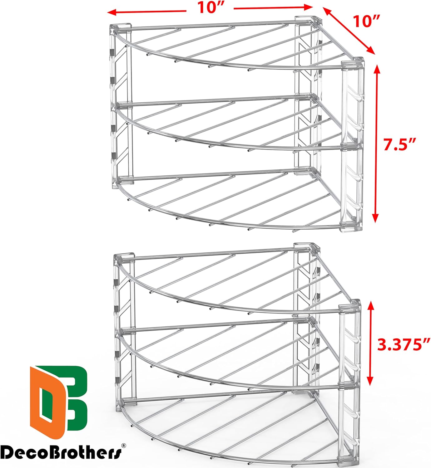 Deco Brothers 3-Tier Counter and Cabinet Corner Shelf Organizer, 2 Pack, Chrome