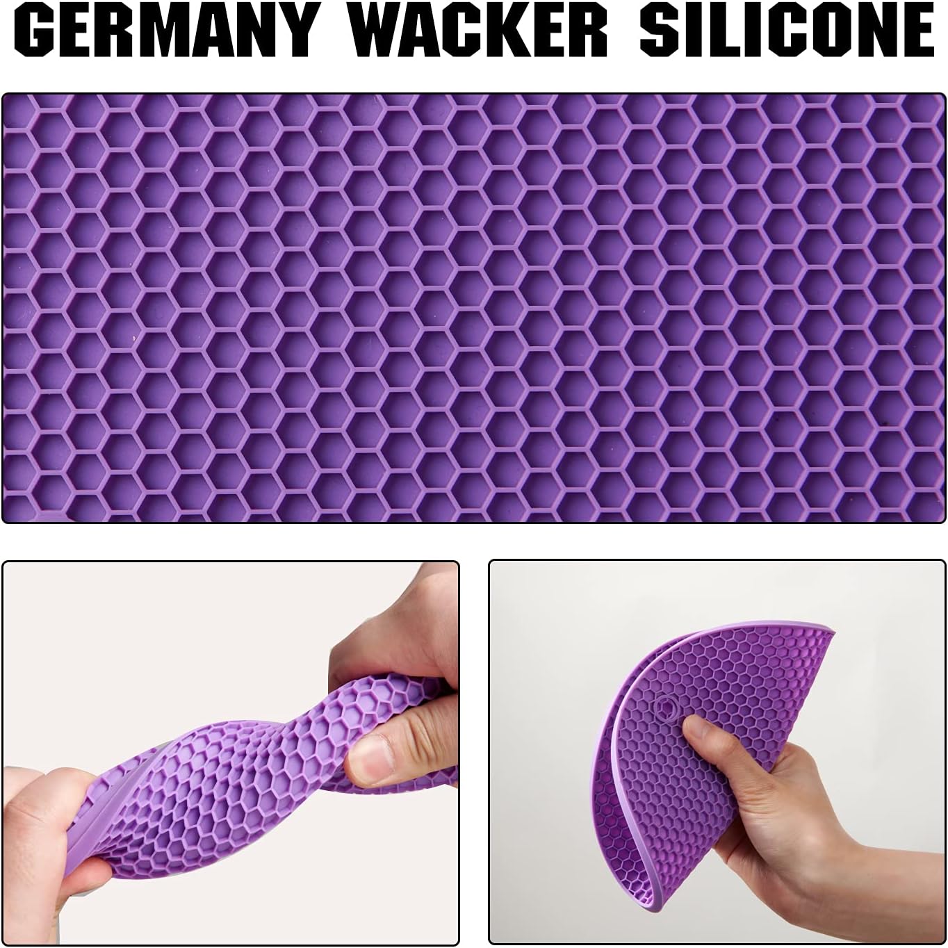 - GERMANY WACKER SILICONE: All trivets are manufactured using wacker silicone, temperature resistant from -105F to 446F, and oven, microwave, and dishwasher safe too.