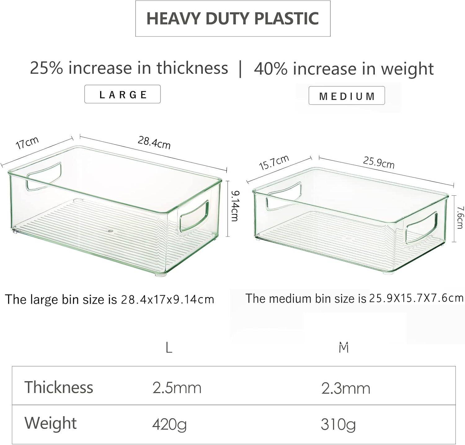 - Durable and Food-safe: Made from crystal clear durable shatter-resistant BPA-Free PETG plastic, these bins for fridge are 100% food-safe and designed to last.