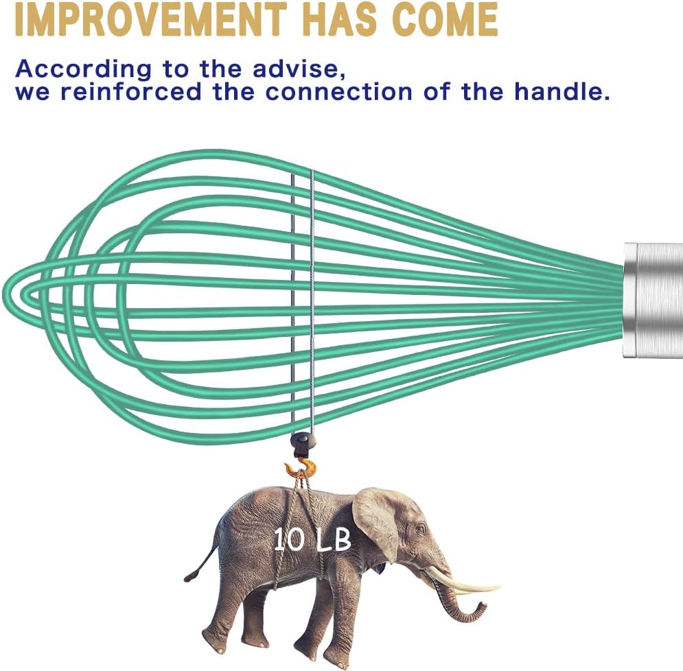 - PROFESSIONAL SILICONE WHISK FOR COOKING NON SCRATCH: Features a 1.75 mm durable stainless steel core coated with 0.4 mm premium silicone. The soft, flexible silicone surface prevents scratching or damaging pots, pans, or bakeware
