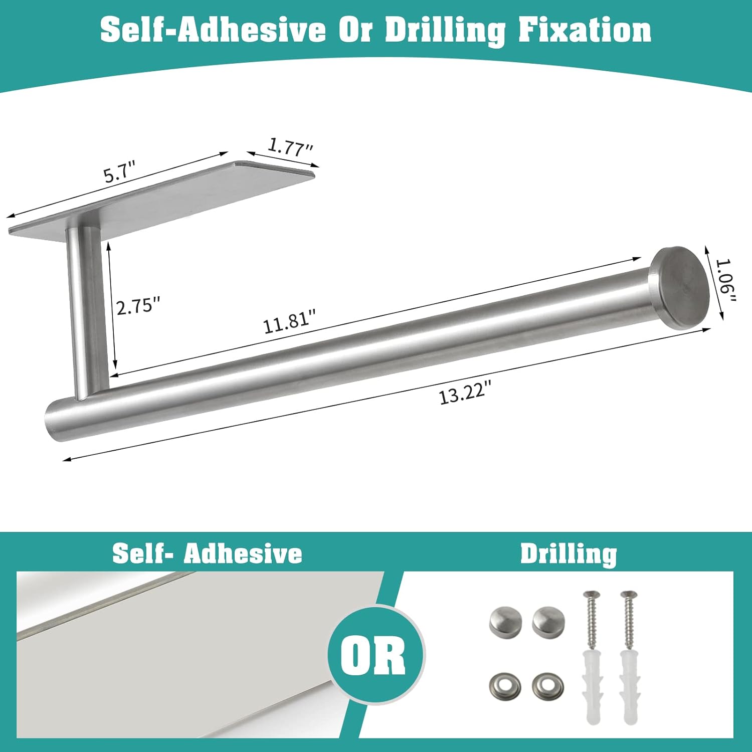 theaoo Under Cabinet Paper Towel Holder for Kitchen, Adhesive Paper Towel Roll Rack for Bathroom Towel, SUS304 Stainless Steel Wall Mount, Both Available for Adhesive and Screws