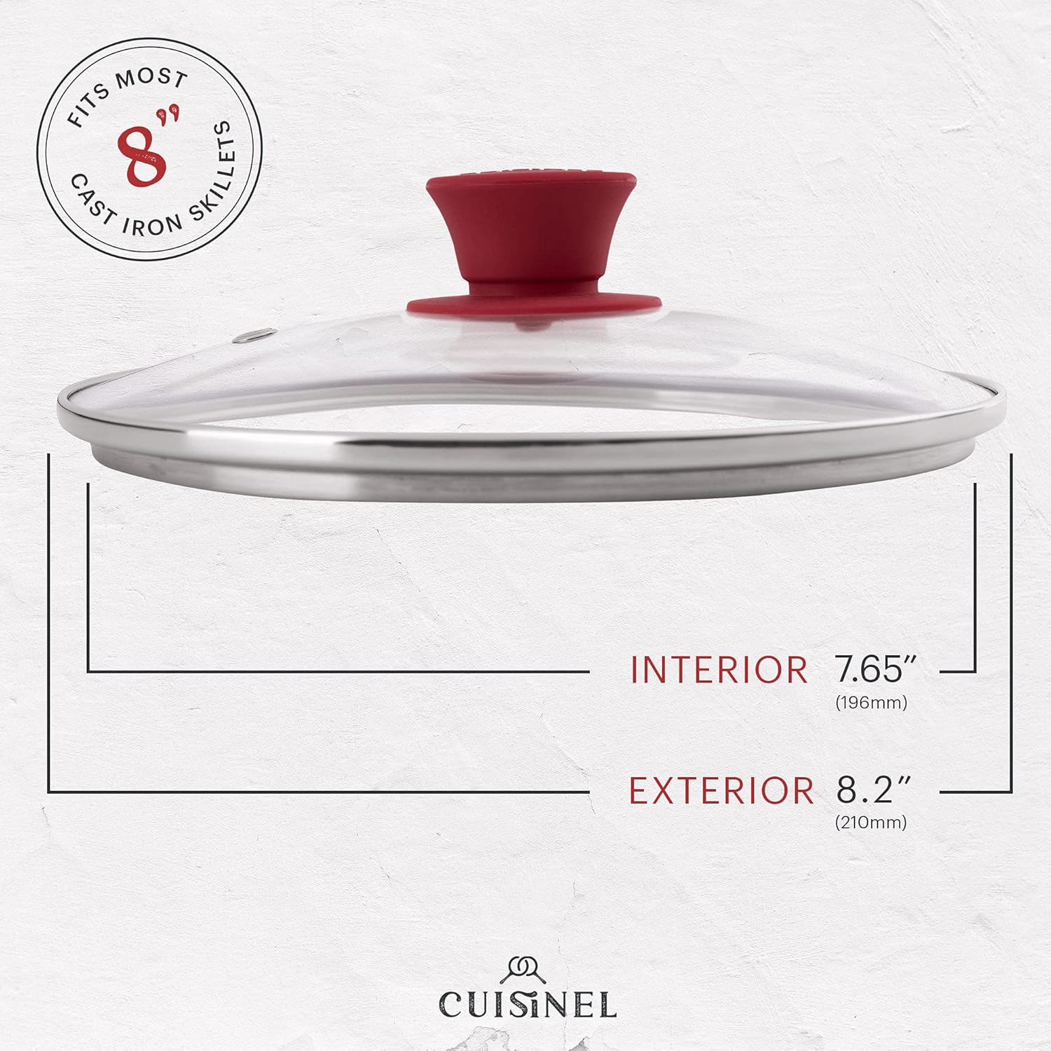 Glass Lid with Steam Vent Hole - 8"-Inch/20.32cm - Compatible with Lodge Cast Iron Skillet Pan - Fully Assembled Universal Replacement Cover - Tempered and Oven Safe - Reinforced Stainless Steel Rim