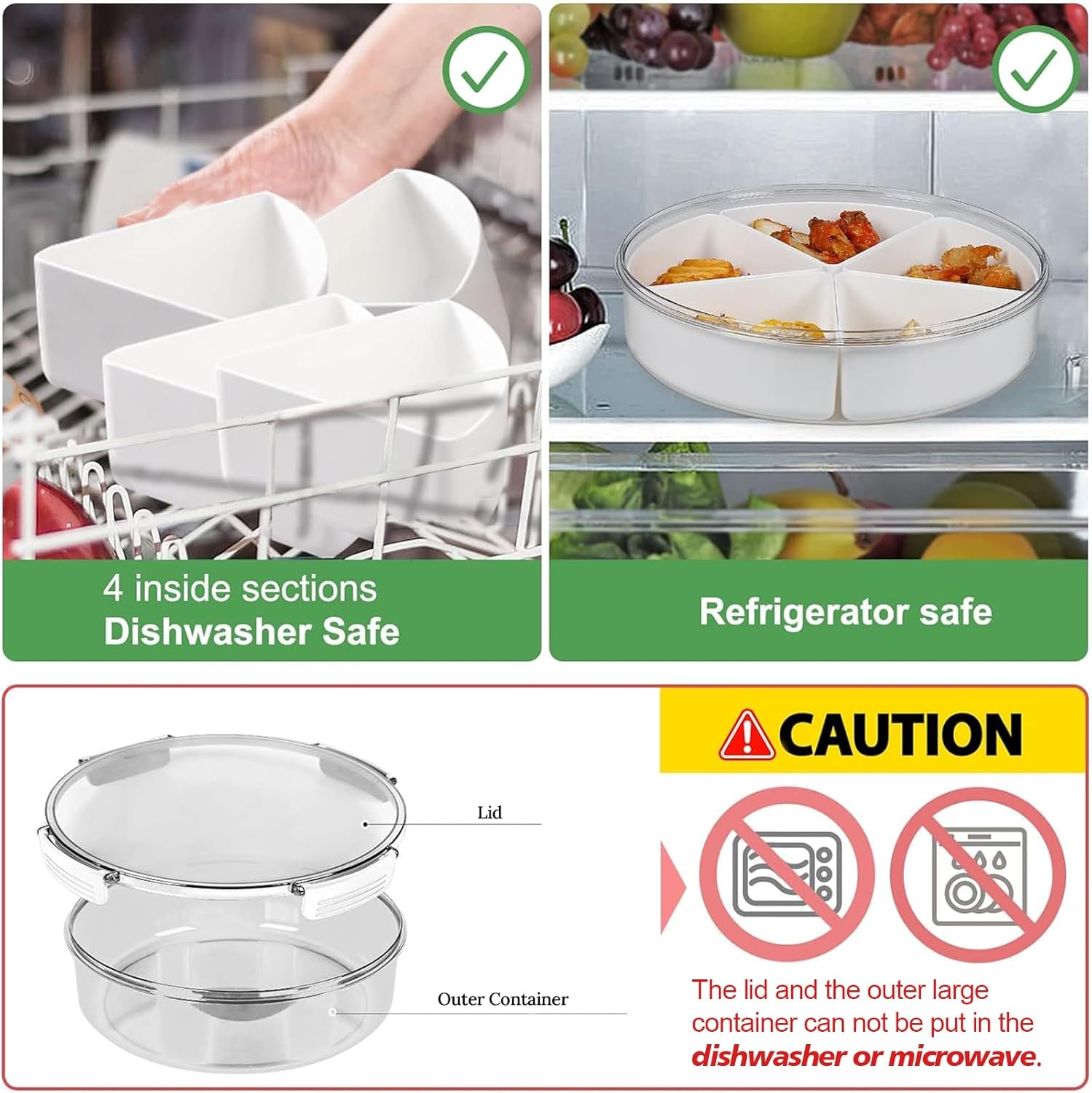 - 【BUILT-IN PARTS DISHWASHER and MICROWAVE SAFE】:This airtight tray container has a shell and lid made of PET and is therefore not dishwasher safe. The small container inside is made of PP and can be used in dishwashers and microwave ovens. Since the shell and lid do not come into direct contact with food, they are usually not stained with dirt, and you only need to rinse them occasionally with water. So don't worry about not being able to use in the dishwasher.