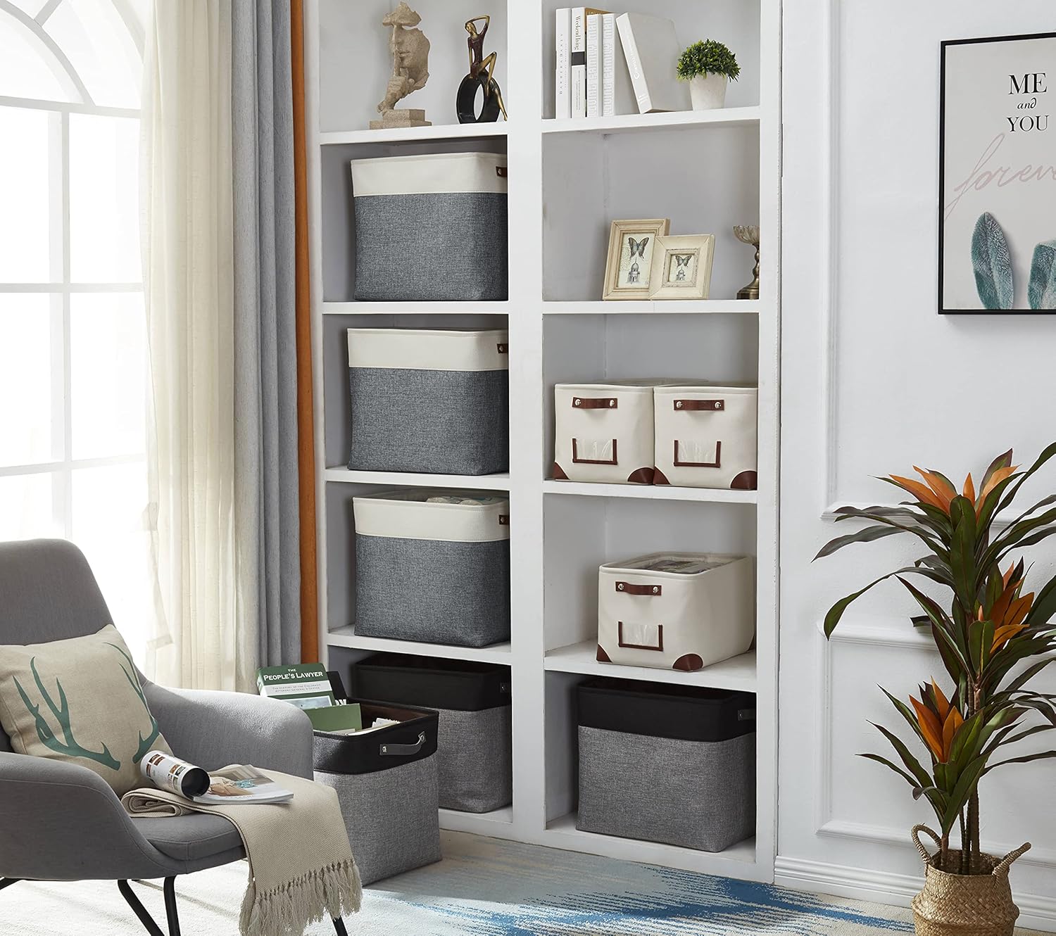 - Premium Material: DECOMOMO's bins feature a sturdy metal frame, extra thick EVA exterior, polyester interior, 2.5mm MDF fiberboard bottom, and faux leather handles capable of holding up to 25 lbs.