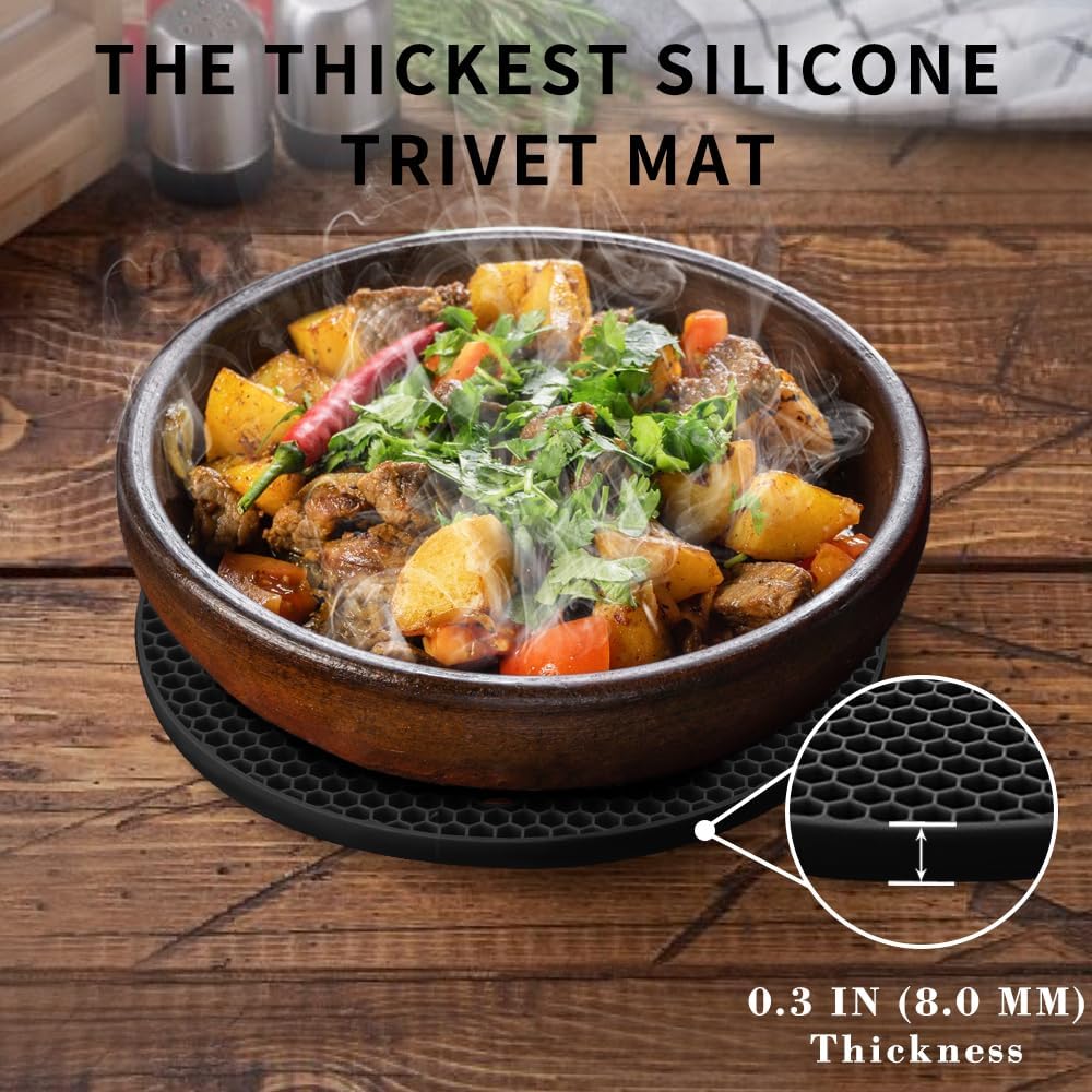 - 💝【SAFE TO USE & HEAT INSULATION 】 The 4 pack round silicone mats for the kitchen counter are made of 100% premium food-grade silicone. The Heat-resistant temperature of the silicone pot holder is -40℉ to 446℉. Our round silicone trivets protect your kitchen countertop from being damaged, you can directly put the hot pot from the stove on the tabletop; used as a potholder and handle protector to protect the hand from being burned.