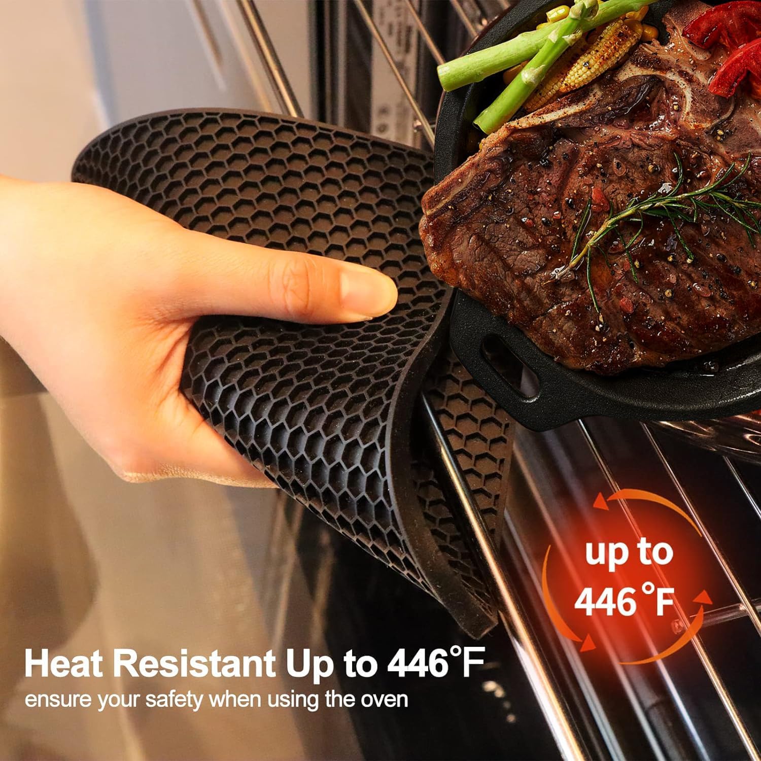 4 Pack Silicone Trivets for Hot Pots and Pans, Pot Holders Hot Pads, Non-Slip & Heat Resistant Silicone Mats for Kitchen Counter, Soft Durable Drying Mat, Jar Opener and Coasters (2 Black+2 Dark Grey)