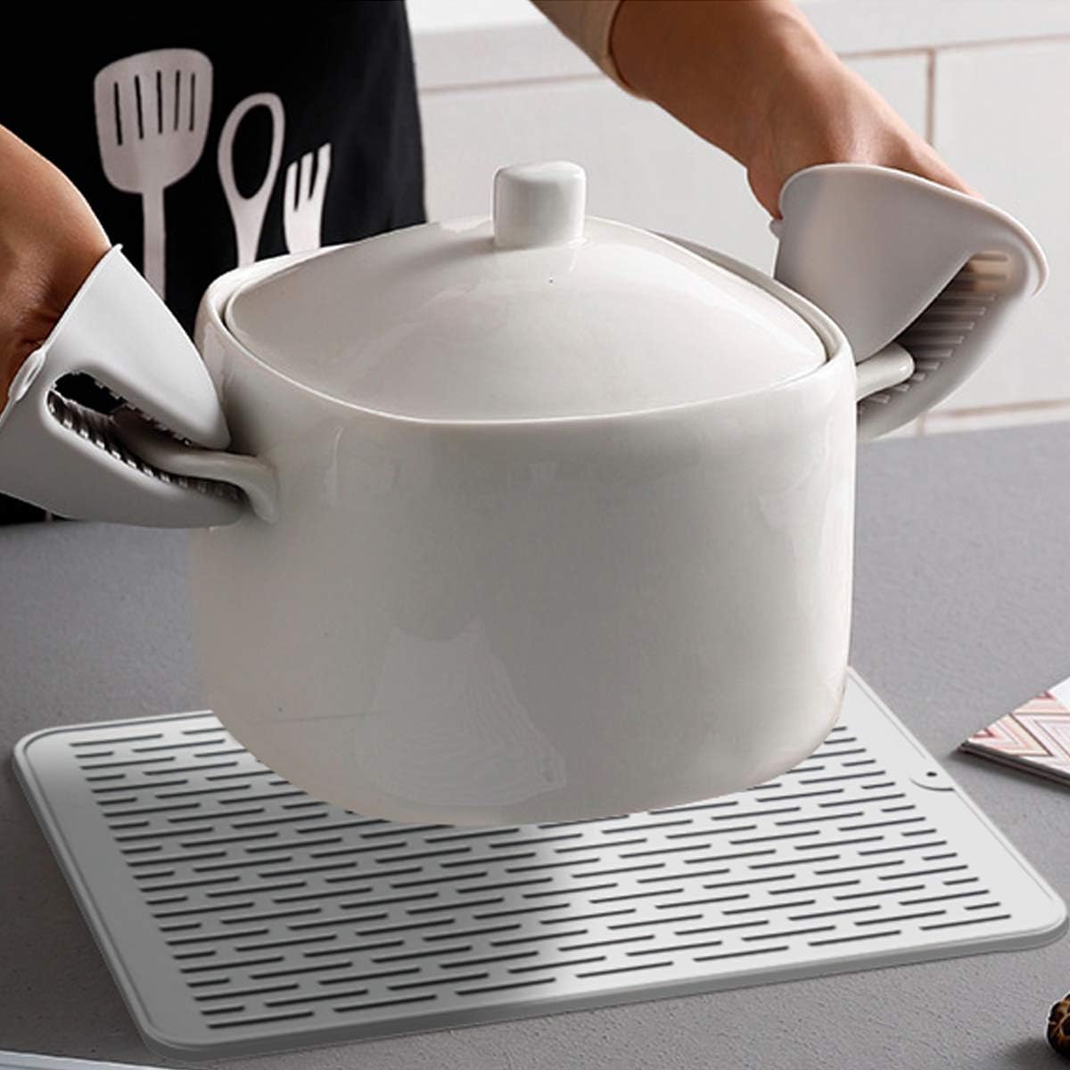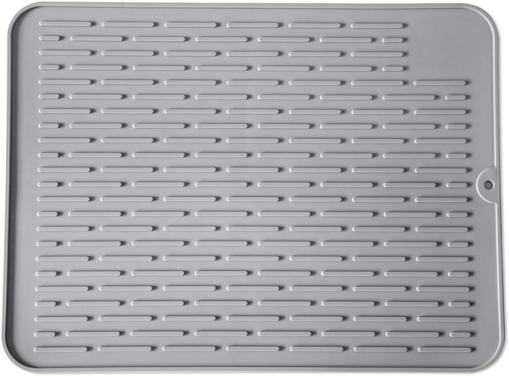 Silicone Dish Drying Mat for Multiple Usage,Easy clean,Eco-friendly,Super Sturdy Silicone Dish Drying Mat and Trivet, Dishwasher Safe, Heat Resistant (Gray, M 15.7×11.8inch)