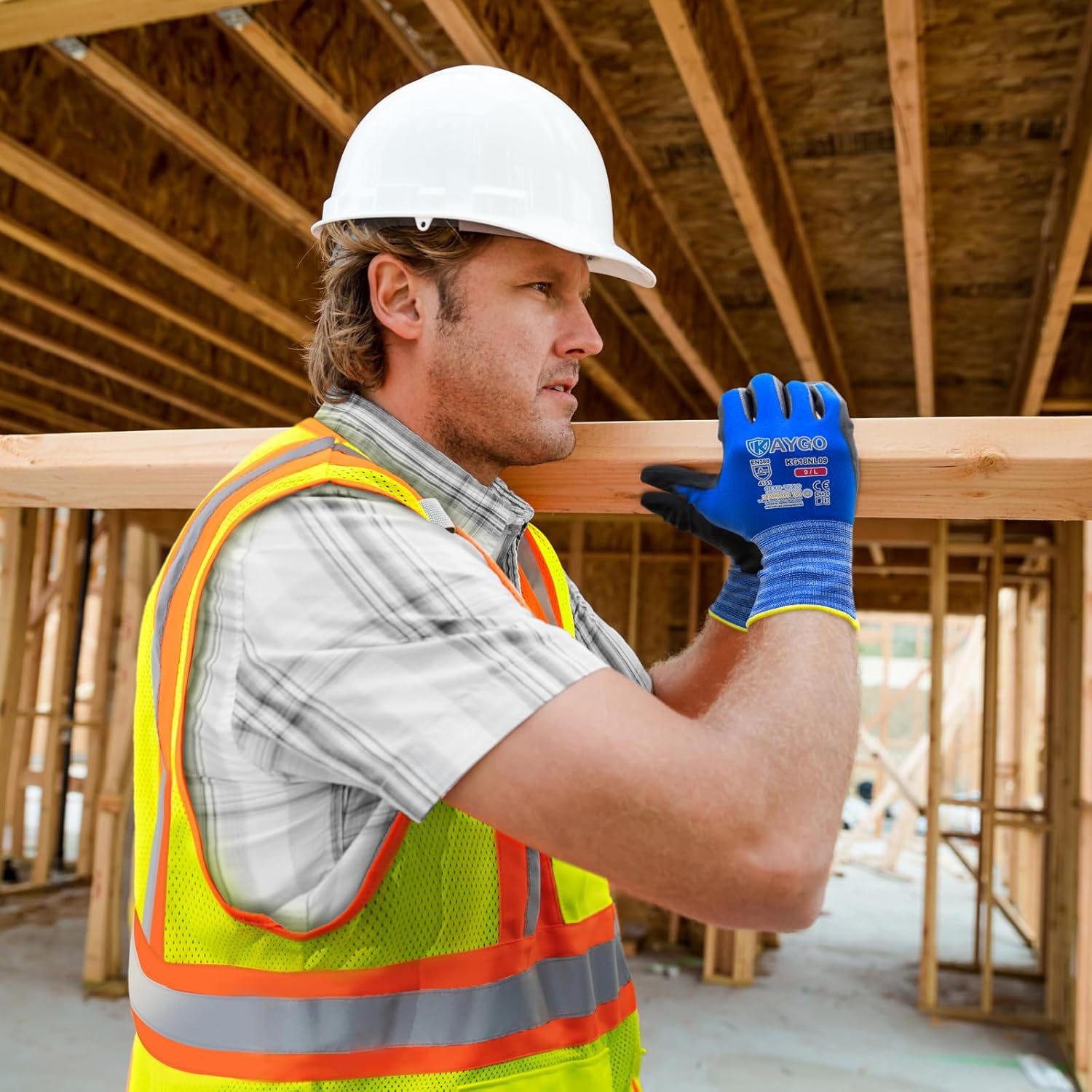 Safety Work Gloves MicroFoam Nitrile Coated-12 Pairs,KAYGO KG18NB,Seamless Knit Nylon Glove with Black Micro-Foam Nitrile Grip,Ideal for General Purpose,Automotive,Home Improvement Blue