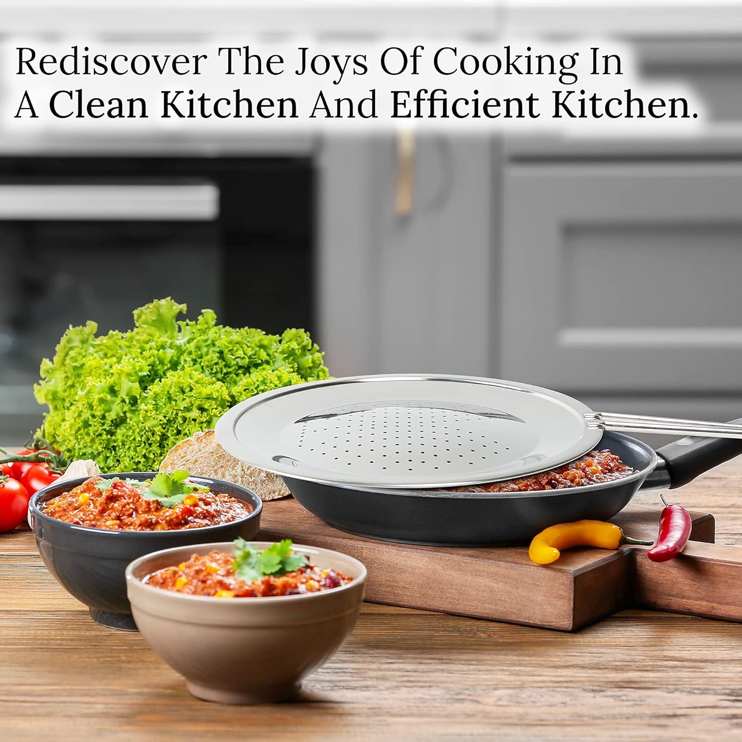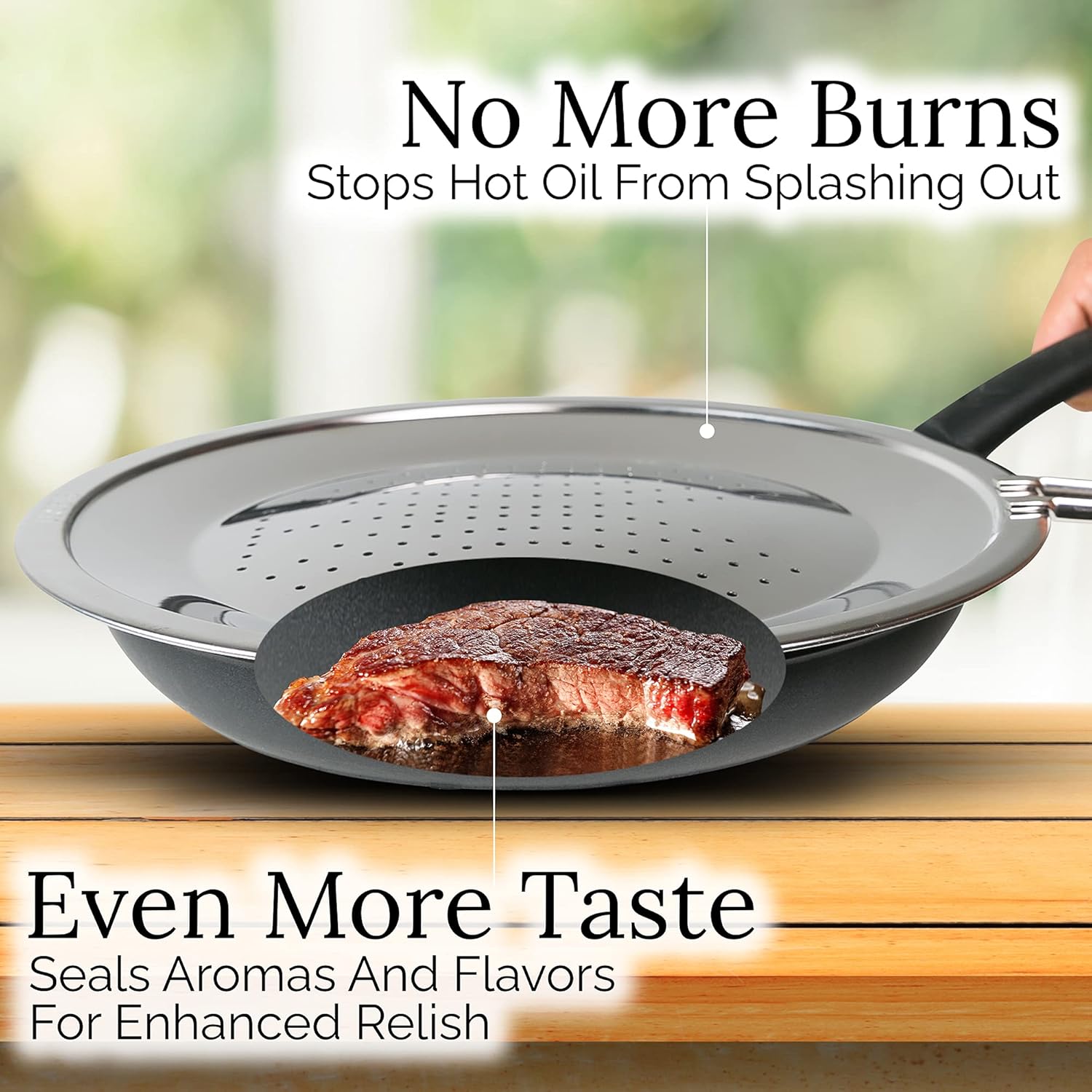 - MADE OF PERFORATED STAINLESS STEEL - This symmetrically structured perforated splatter screen releases water vapor. It enriches a crisp texture, characteristic fried flavors and aromas, a pleasure to your taste buds. You can increase your dish value and prepare your dishes like a professional chef. This is a must-have product for those who do not want a messy kitchen anymore and those who want to serve great food.
