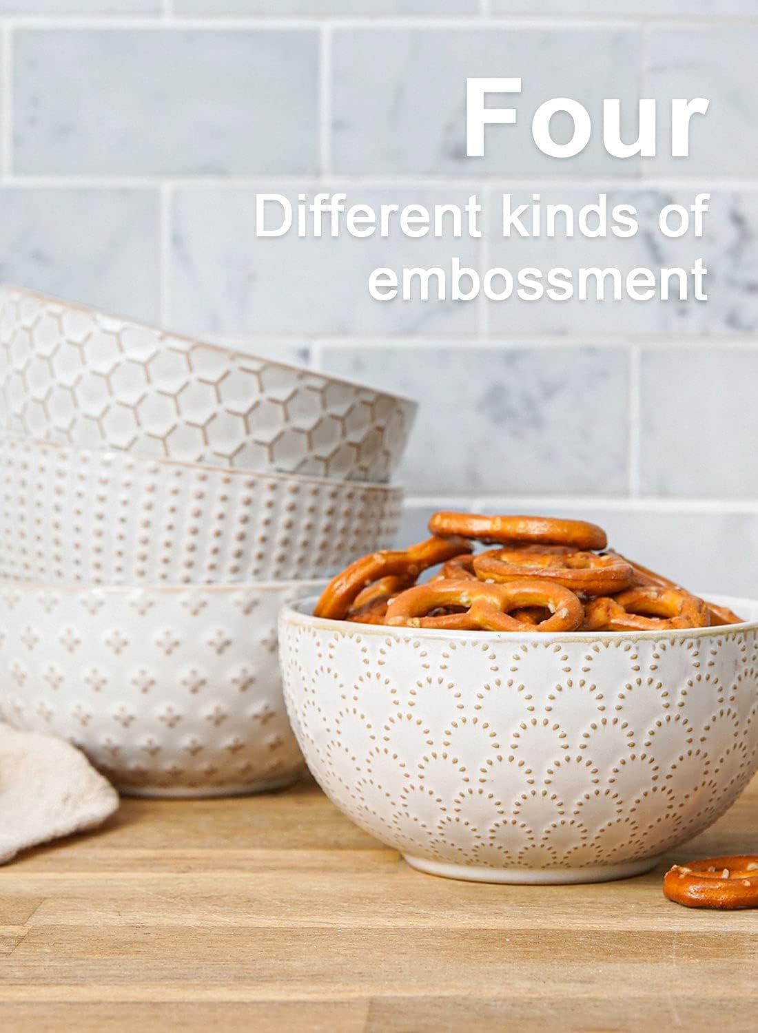 LE TAUCI Small Bowls 12 OZ, Ice Cream Bowl, Ceramic Embossment Stoneware Bowl, Bowls Set for Dessert, Fruits, Side Dishes, Suit For Housewarming - 4.5 Inch, Set of 4, Arctic white