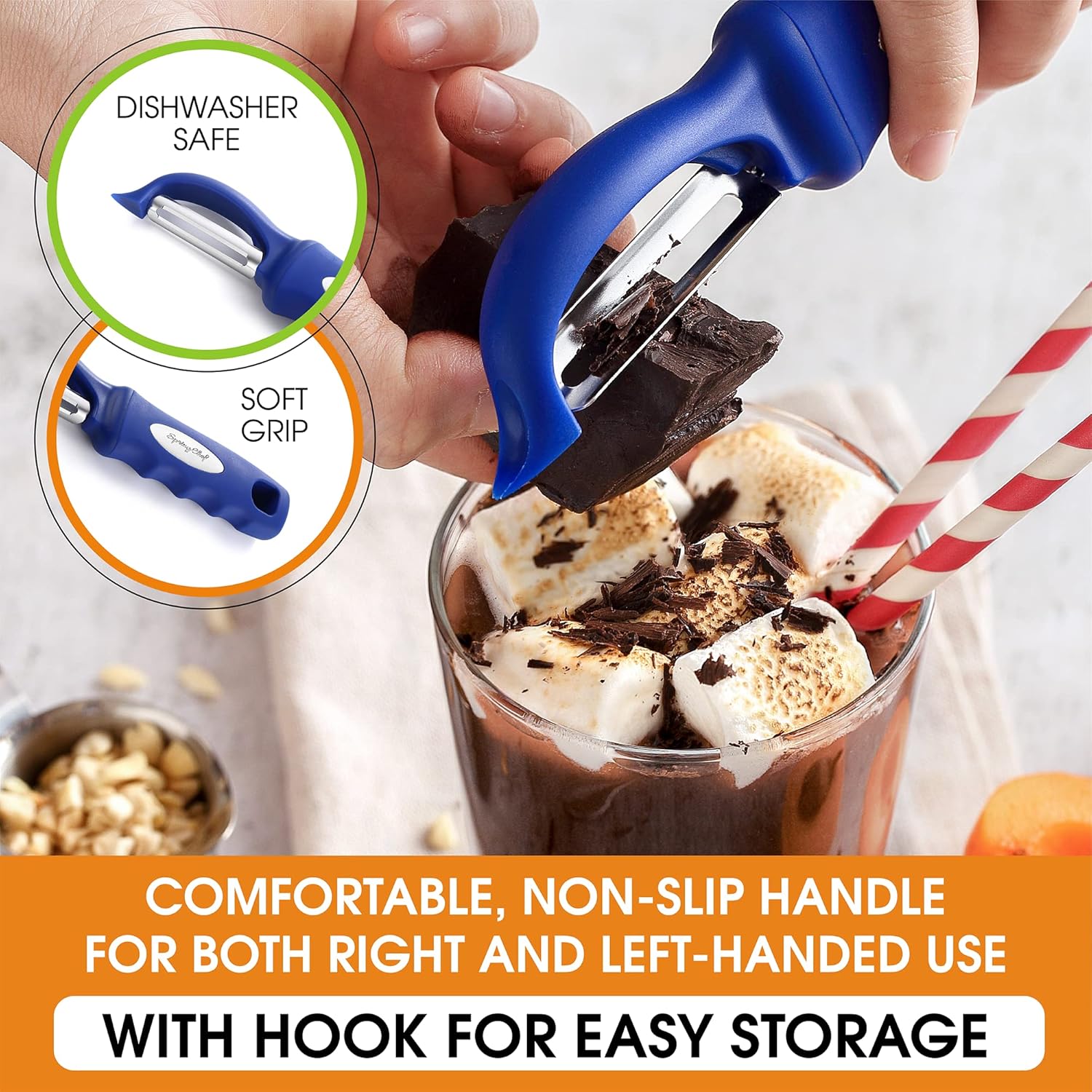 Spring Chef Premium Swivel Vegetable Peeler, Soft Grip Handle and Ultra Sharp Stainless Steel Blades - Perfect Kitchen Peeler For Veggie, Fruit, Potato, Carrot, Apple - Sapphire