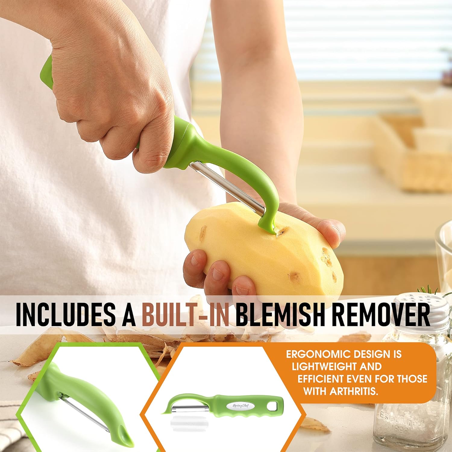 Spring Chef Premium Swivel Vegetable Peeler, Soft Grip Handle and Ultra Sharp Stainless Steel Blades - Perfect Kitchen Peeler For Veggie, Fruit, Potato, Carrot, Apple - Green