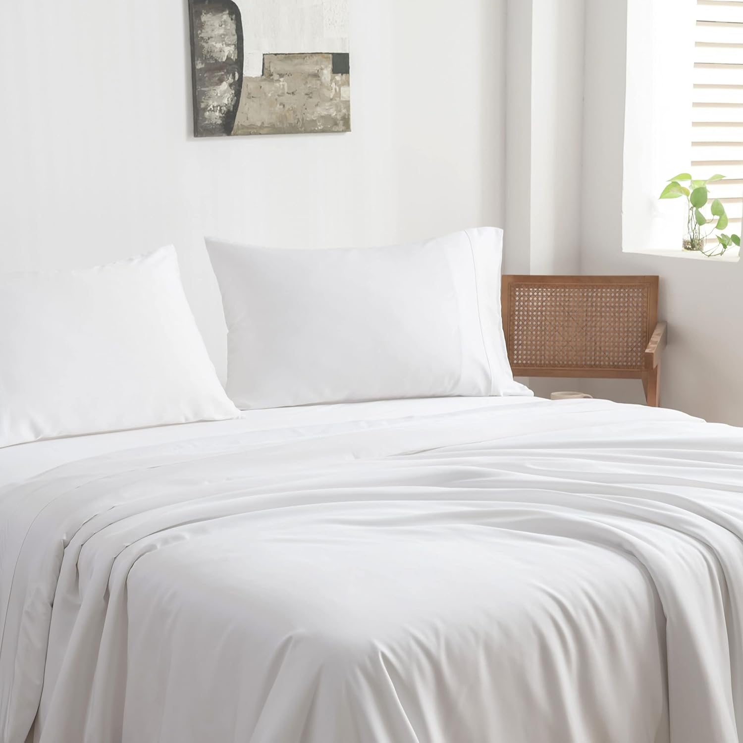 100% Viscose from Bamboo Sheets Full Size, Super Soft Bedding Set, 4PC Cooling Sheets for Hot Sleepers, Vegan Silk Moisture Wicking, Organically Grown Bedsheet, White - 54" x 75"
