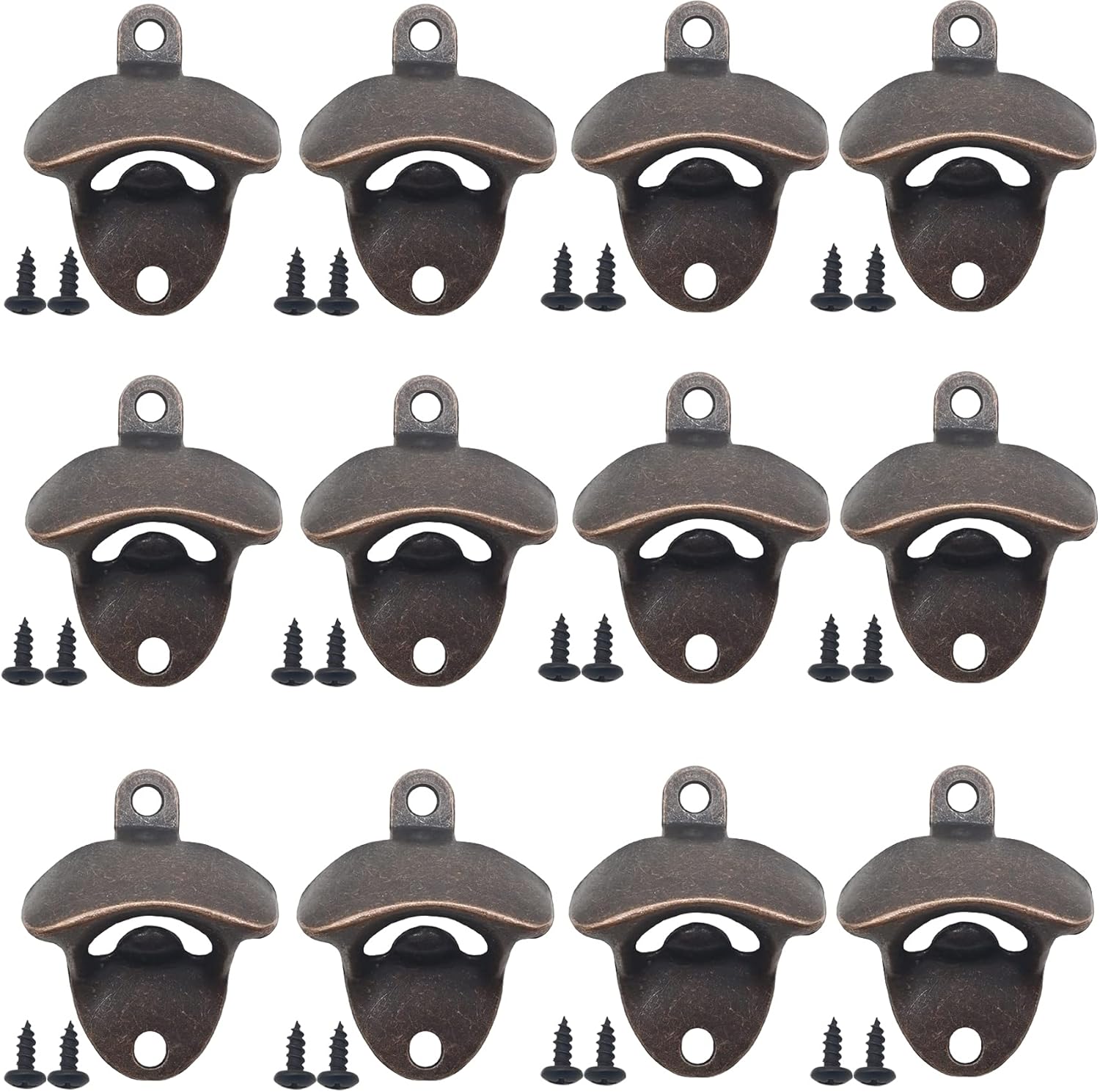 TIHOOD 12PCS Wall Mounted Bottle Opener Vintage Beer Bottle Opener Suitable for Bars KTV Hotels Homes(Red Bronze)