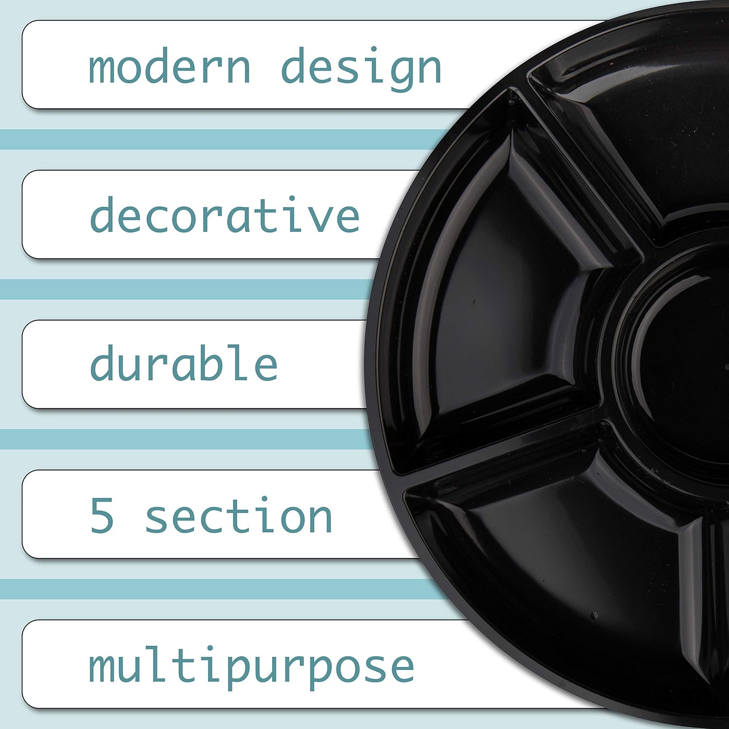 Plasticpro 6 Sectional Round Plastic Serving Tray/Platter (8, Black)