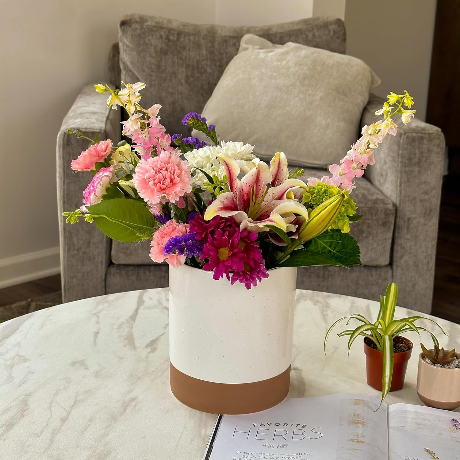 Mora Ceramic Kitchen Utensil Holder - Wooden Spoon & Spatula Crock for Countertop, Modern Farmhouse Home Decor, Extra Large 7.3" Cooking Organizer for Stove Top and Counter - Heavy & Sturdy - Vanilla