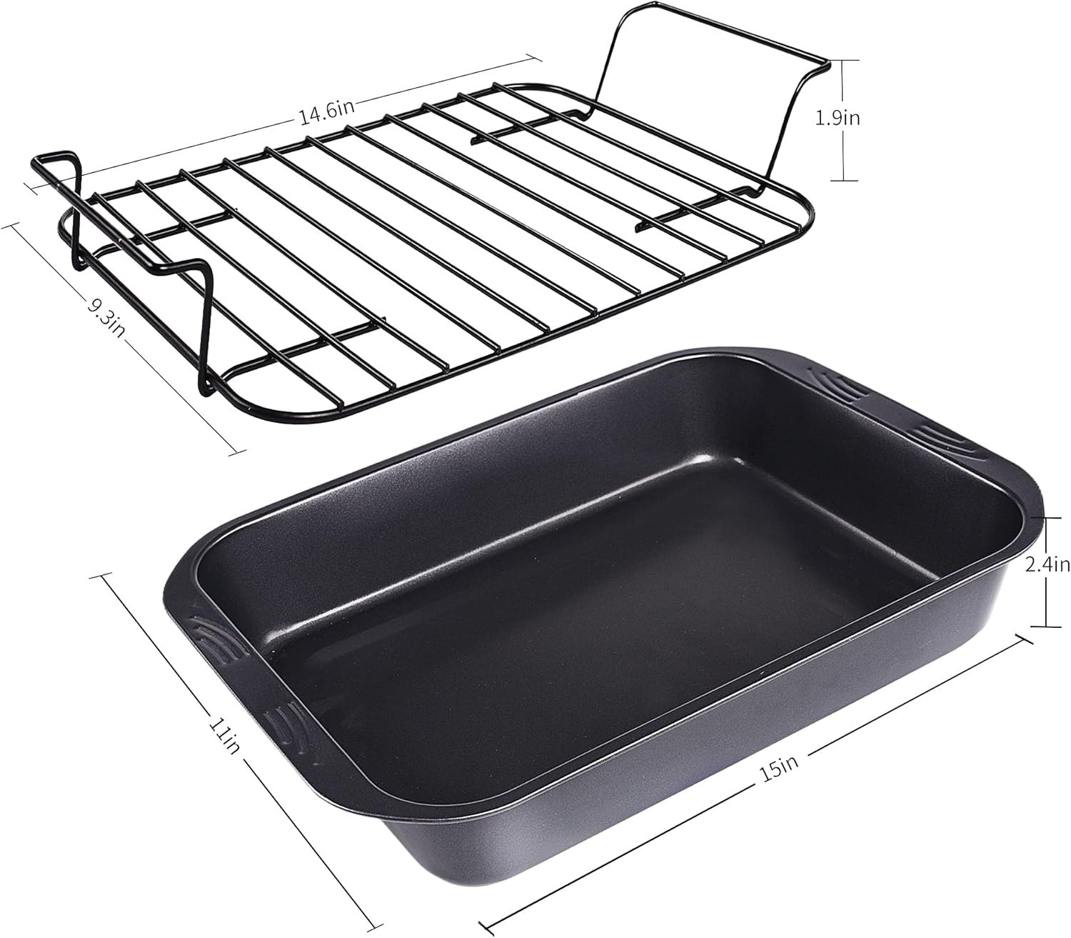 - 4.5-QUART NON-STICK BAKING PAN WITH RACK: Large capacity is perfect for roasting turkey, chicken, lasagna, casserole dishes and steaks. Can also be used for food storage