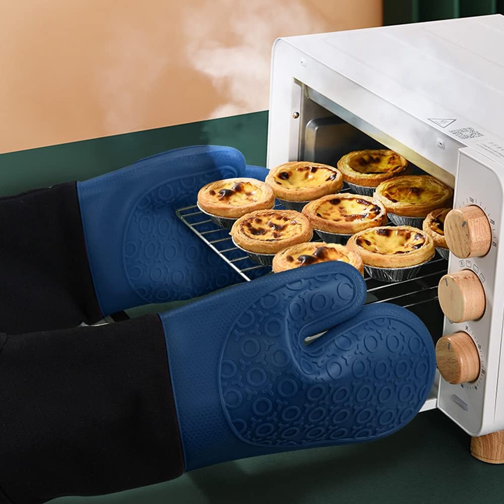 sungwoo Extra Long Silicone Oven Mitts, Heat Resistant Oven Gloves with Quilted Liner Non-Slip Textured Grip Perfect for BBQ, Baking, Cooking and Grilling - 1 Pair 14.6 Inch Royal Blue & Black