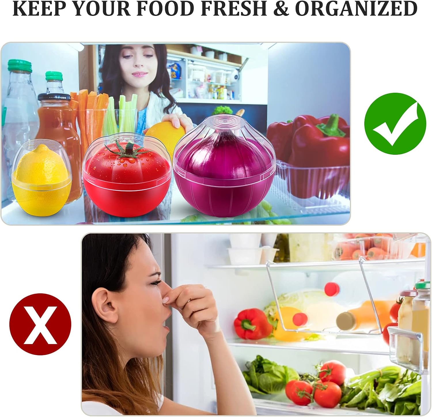 - 🍇【WIDE USE】Keeps food organized and fresh in your fridge, convenient and baggie-free storage box for unused portions of garlic, sliced tomato, onion, lemon, lime, garlic and more, also works great for grape, berry, cherry, herb, etc.