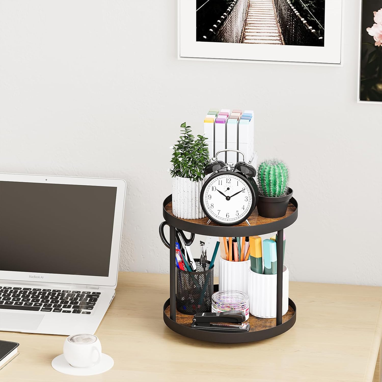 - 【Easy Assembly & Maintenance】Upgrade the installation method, With embedded teeth hexagon - easy installation, detailed instructions and tools provided, assembly of thisCountertop Shelf Organizer and 2 Tier Lazy Susan Organizer are a breeze, and get it done easily in 10 minutes! The waterproof and dust-free wooden surface can be easily cleaned with a damp cloth.
