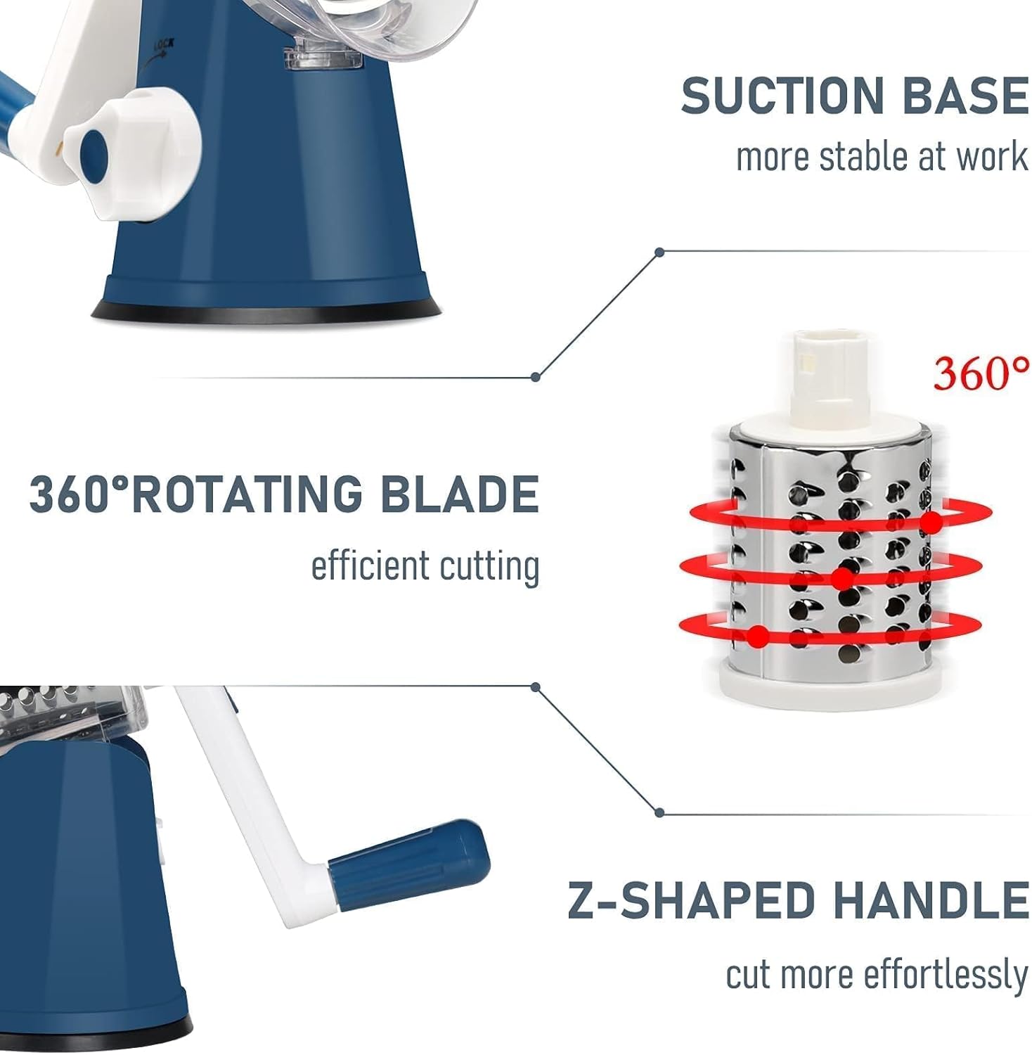 - 🧀Safe and Heavy Duty: 100% BPA-free food grade ABS plastic and 3 Sharp stainless steel blades ensure the vegetable grater's longevity for everyday use. You can simply clean the rotary grater under running water, it is also dishwasher safe.