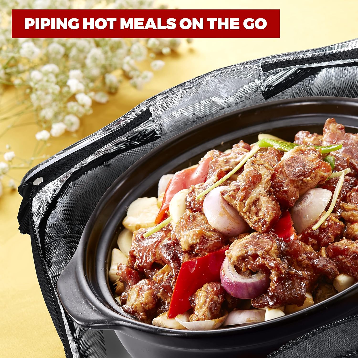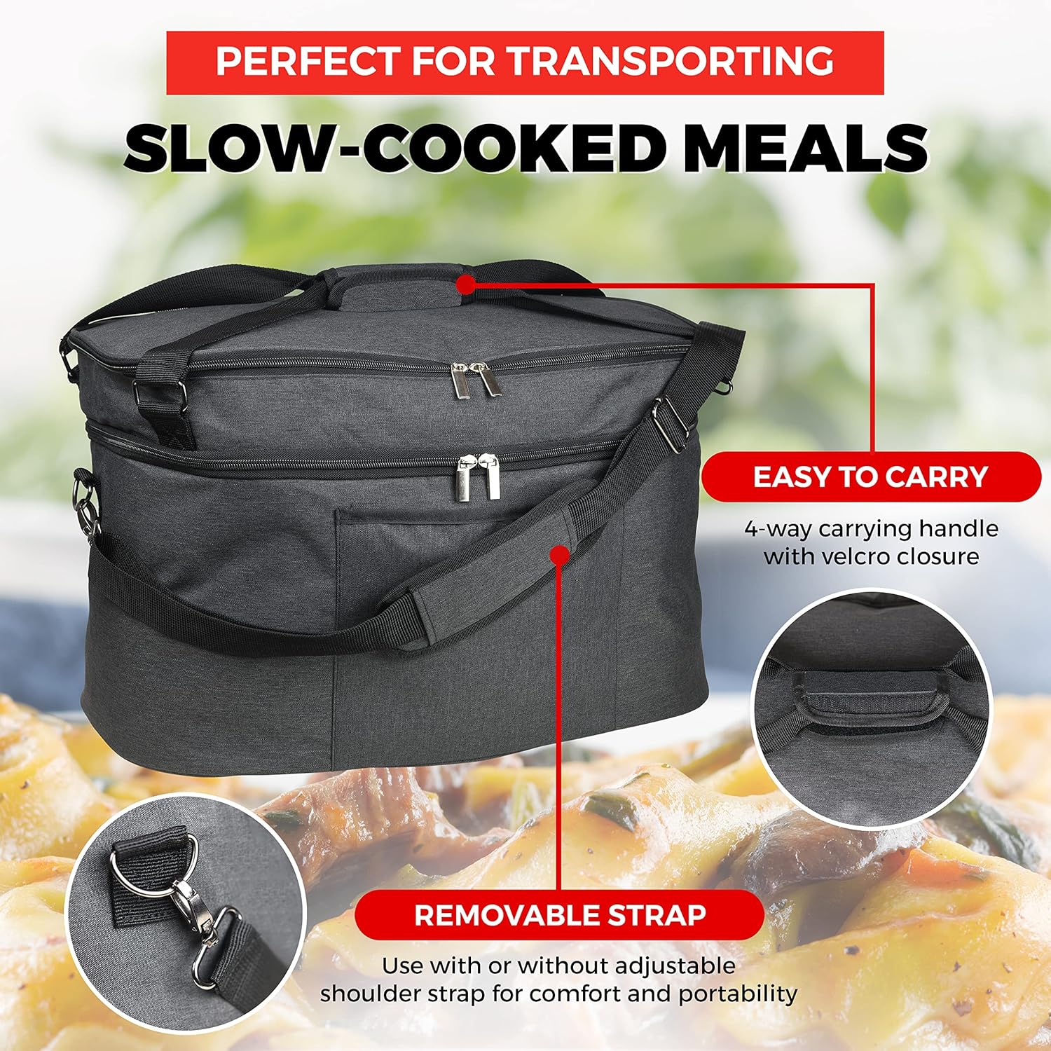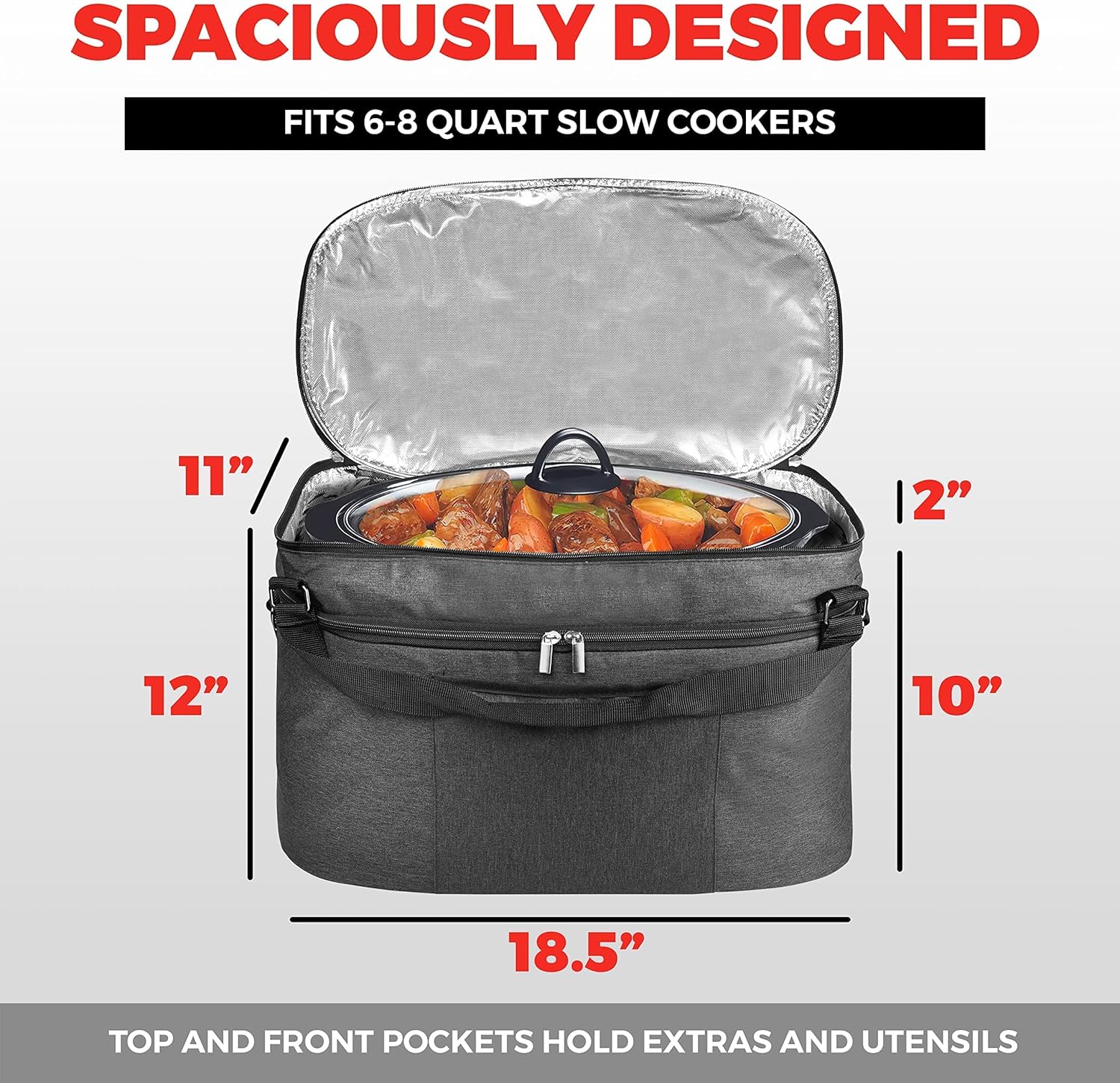 Slow Cooker Bag Slow Cooker Carrier Travel Bag for 6-8 Quart Pots Locking Travel Bag with Secure Zip & Accessory Pocket Insulated Carrier, Pot Holder Carrying Bags with Easy to Clean Inner Lining