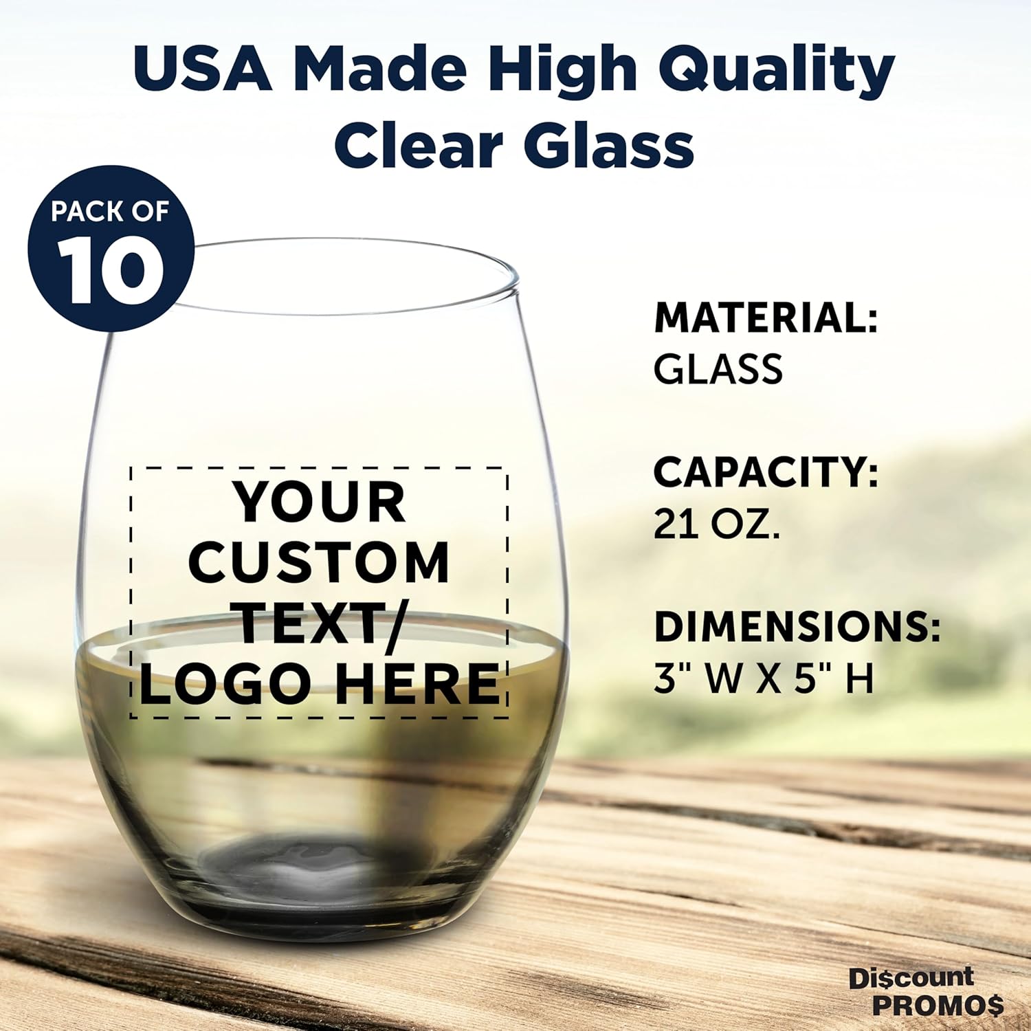 DISCOUNT PROMOS 10 ARC Stemless Wine Glasses Set, 21 oz. - Customizable Text, Logo - Chardonnay, Cabernet, Merlot, Sauvignon - Black
