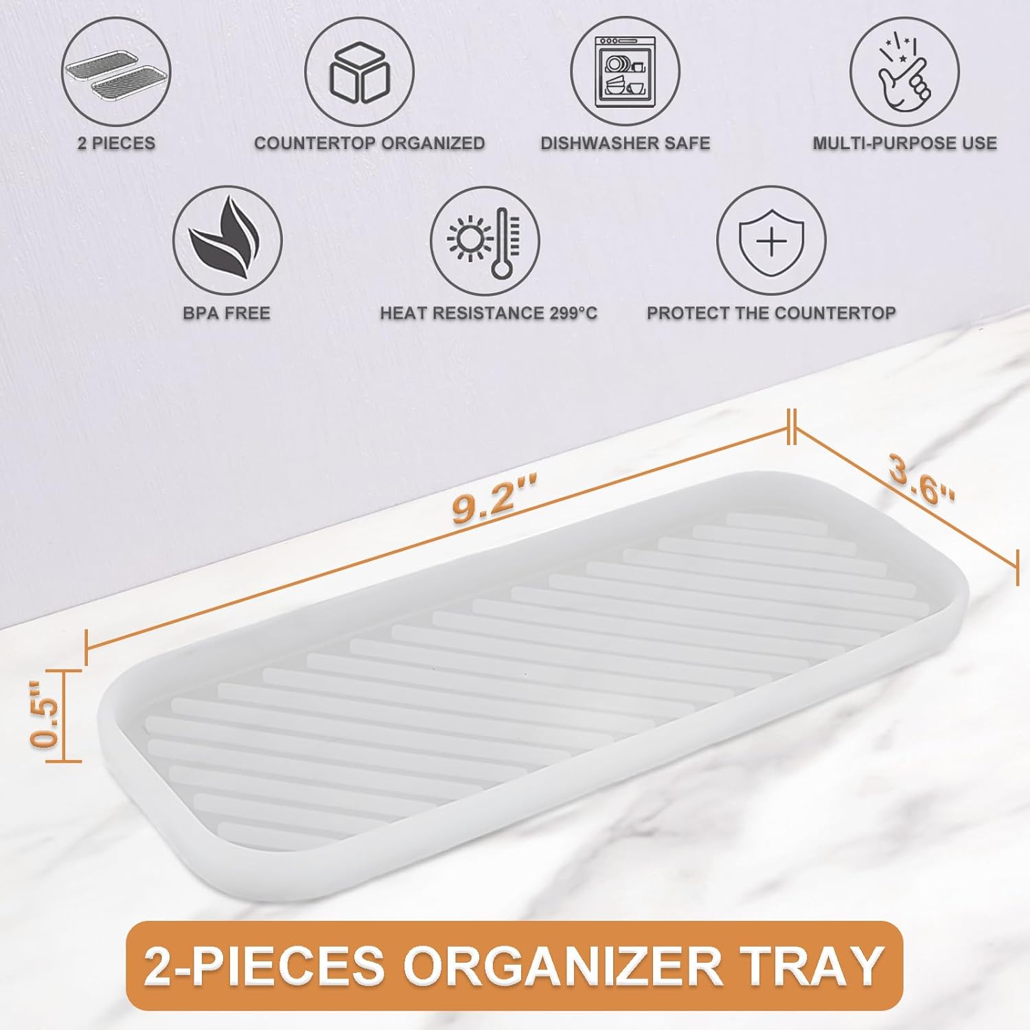 Silicone Organizer Tray, Soap and Sponge Holder for Kitchen Sink, Bathroom - Storage Tray for Dish Brush, Soap Dispenser, Dishwashing Accessories- 2 Pack (Clear)
