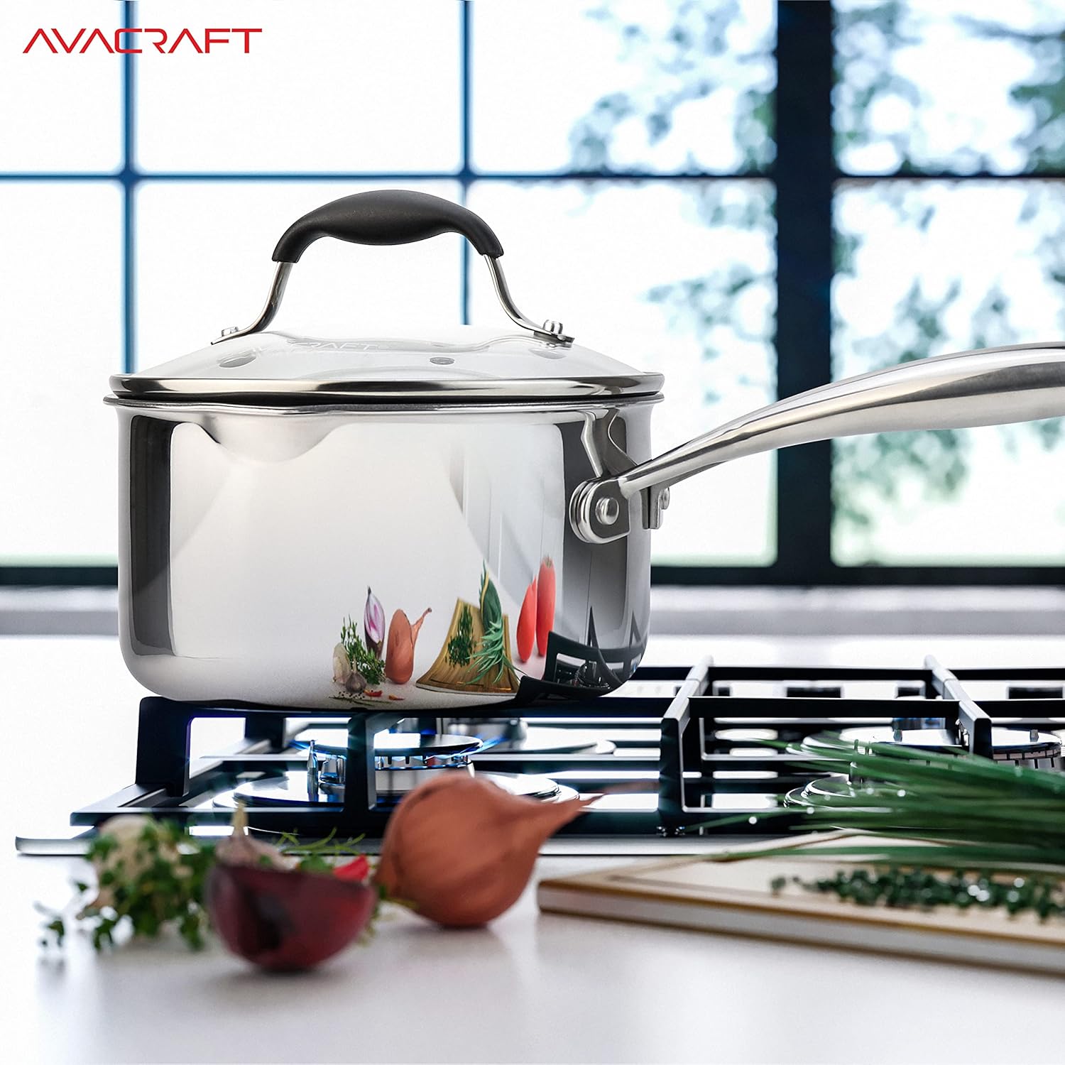 - HIGH QUALITY: 100% Ceramic nonstick pan on AVACRAFT triply stainless steel sauce pan base makes it 100% safe & healthy. US Nonstick Ceramic technology, free of any toxins making it the best nonstick pan set. Free of PTFE, PFOA, PFOS. Avacraft non stick pans.