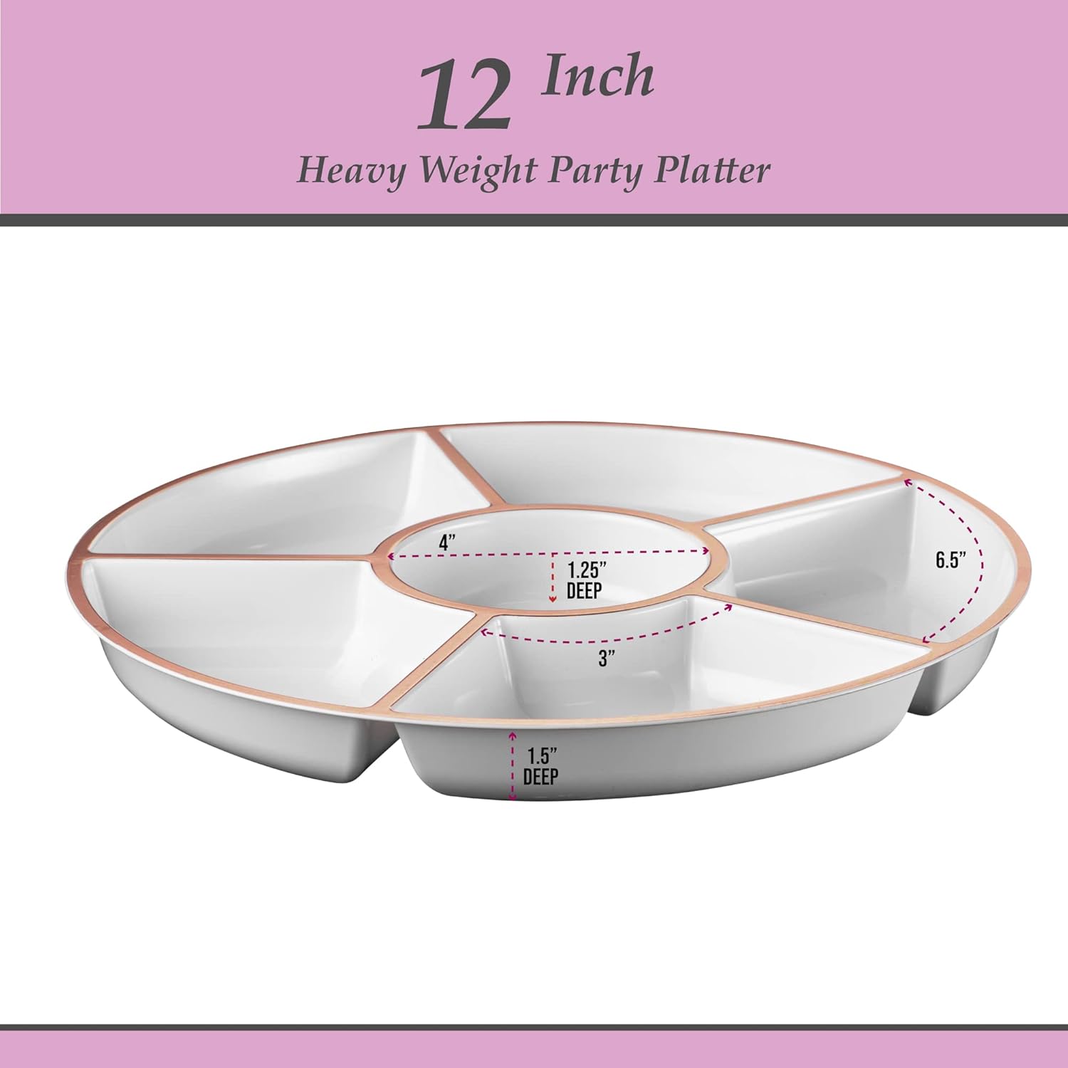 Plasticpro 6 Sectional Round Plastic Serving Tray/Platter (4, White & Rose Gold)