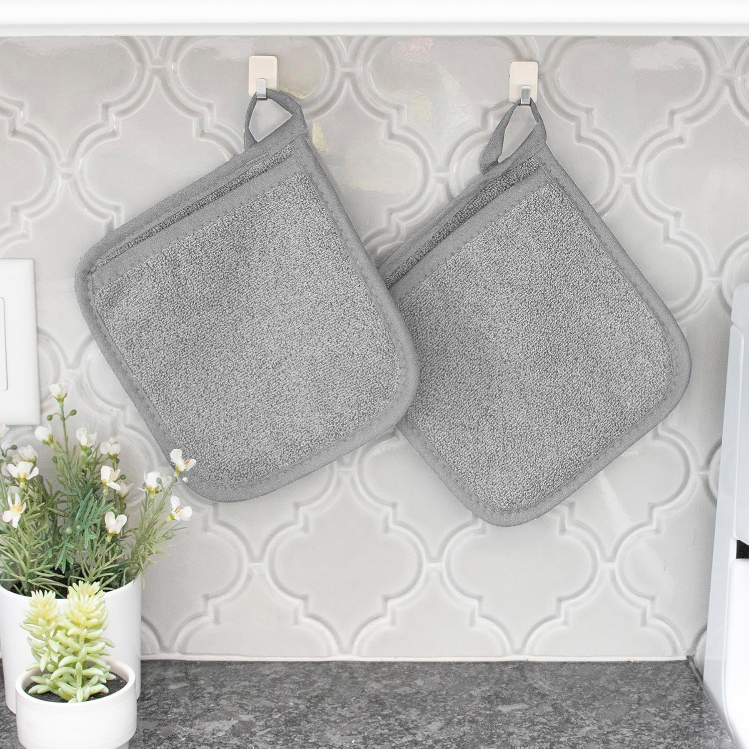 - CONVENIENT HANG LOOP. We know that a busy kitchen requires tools that are always within reach. That's why each pocket mitt comes complete with a handy hanging loop. Hang them by your oven or kitchen island, and you'll always have your trusty mitts right where you need them.