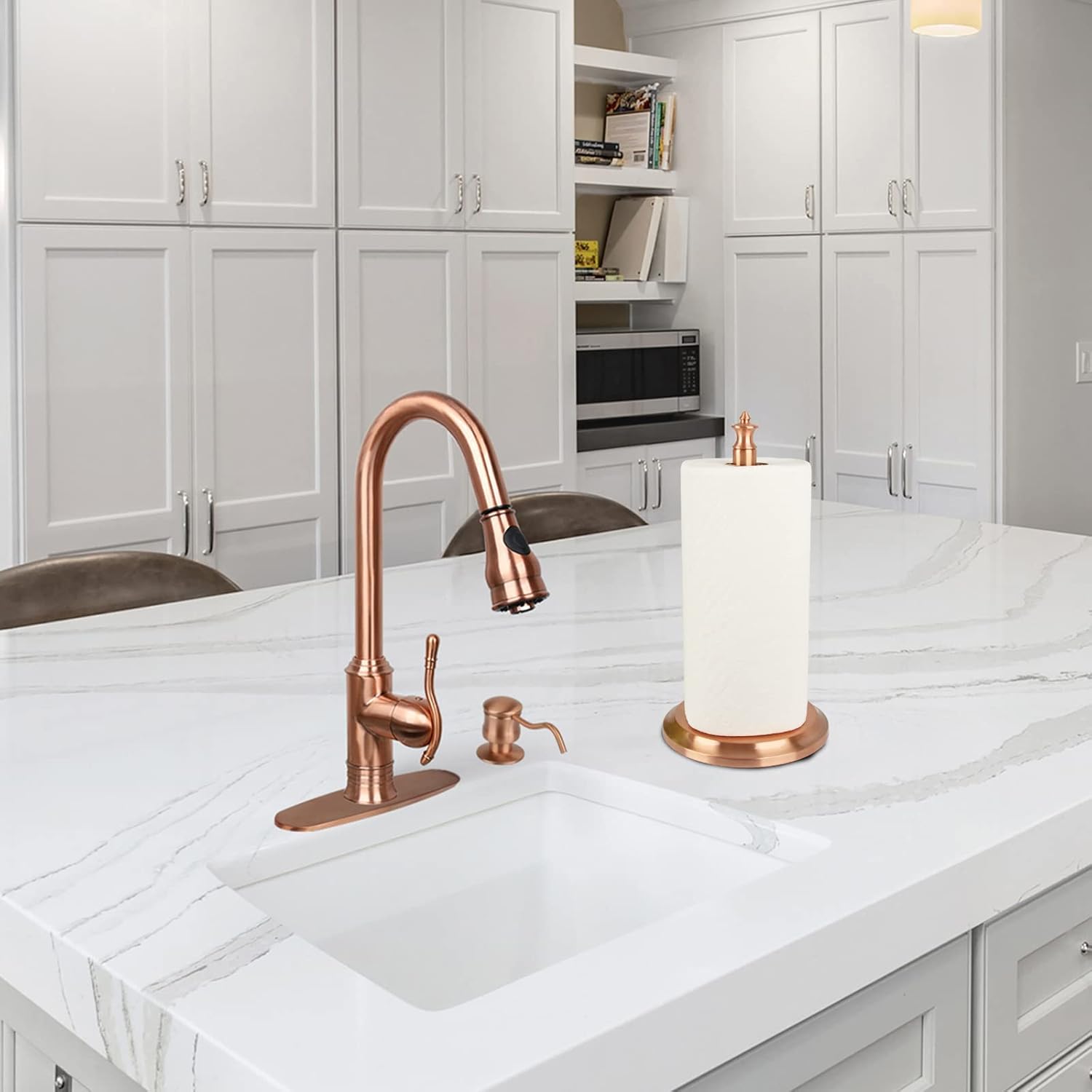Akicon Paper Towel Holder Stand for Kitchen Countertop & Dining Room Table (Copper, Classical)
