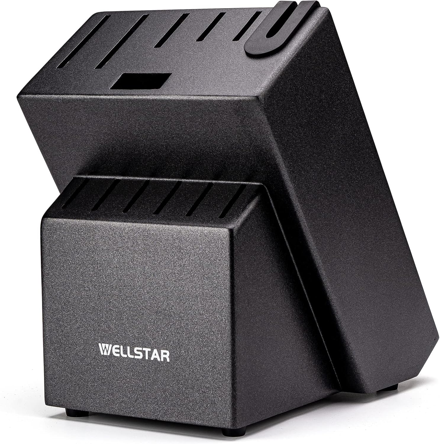12 Slot Kitchen Knives Block, WELLSTAR Natural Wood Knife Holder without Knives – Hard Wood Countertop Knife Storage with Built-in Knife Sharpener - Black